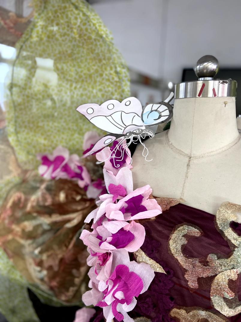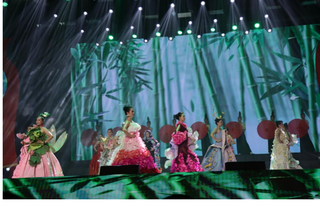 本次纸装分别以芙蓉花、海棠花、荷花、紫薇花、桂花、月季花、栀子花、报春花、腊梅等16种四川城市的市花为主题进行设计,五彩斑斓、争奇斗艳、美不胜收,打造出如梦幻般的花海世界。作品中还穿插了白鹭、熊猫、蝴蝶等动物元素,与色彩绚丽的花朵互相呼应,相映成趣。动物造型取材于井研农民画,是井研农民画的应用拓展,也是井研农民画的创新性发展。 纸装设计巧妙、造型各异。在材料上大胆创新,运用了织锦缎、欧根纱、炫彩皱纹纸、宣纸、金属以及各种纤维,想象力丰富,充分发挥了各种材料的美感。