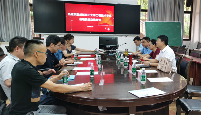 本网讯(文图/朱林富)5月30日,成都理工大学工程技术学院学生处处长李正伟、乐山市老科协成理工程分会会长李金高、地质学专业负责人马煜、工程造价专业负责人李然等一行7人到旅游与地理科学学院考察交流。学院党委副书记、院长郭剑英,副院长孙永兴、学院旅游管理国家一流专业负责人郑元同、世界遗产研究所主任邓明艳、四川世界遗产普及基地主任乔恒忠及人文地理与城乡规划专业系主任朱林富等参加了座谈交流,座谈会由孙永兴主持。