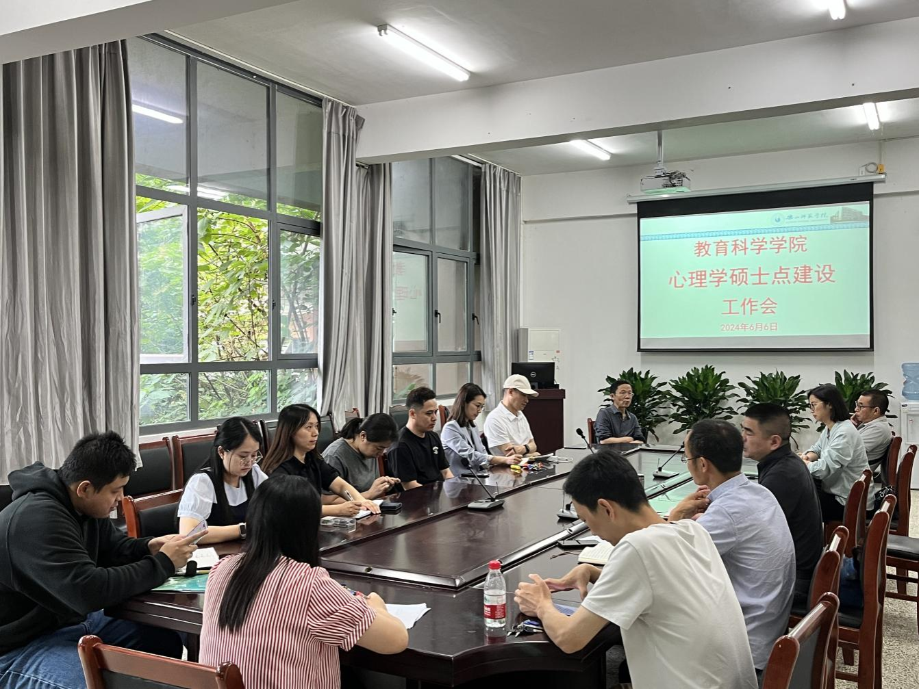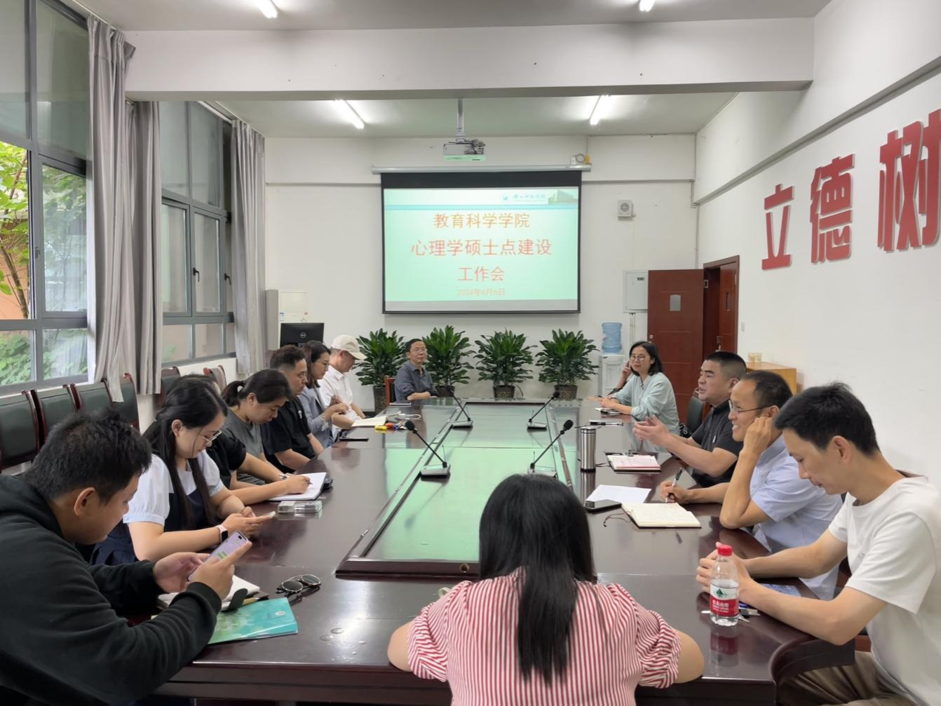 本网讯(文图/巴玉宁)6月6日,教育科学学院在特教B栋101会议室召开申硕建设工作会。学院党委书记罗立顺,副院长马艺丹以及申硕建设团队成员参加了会议,会议由副院长唐前军主持。