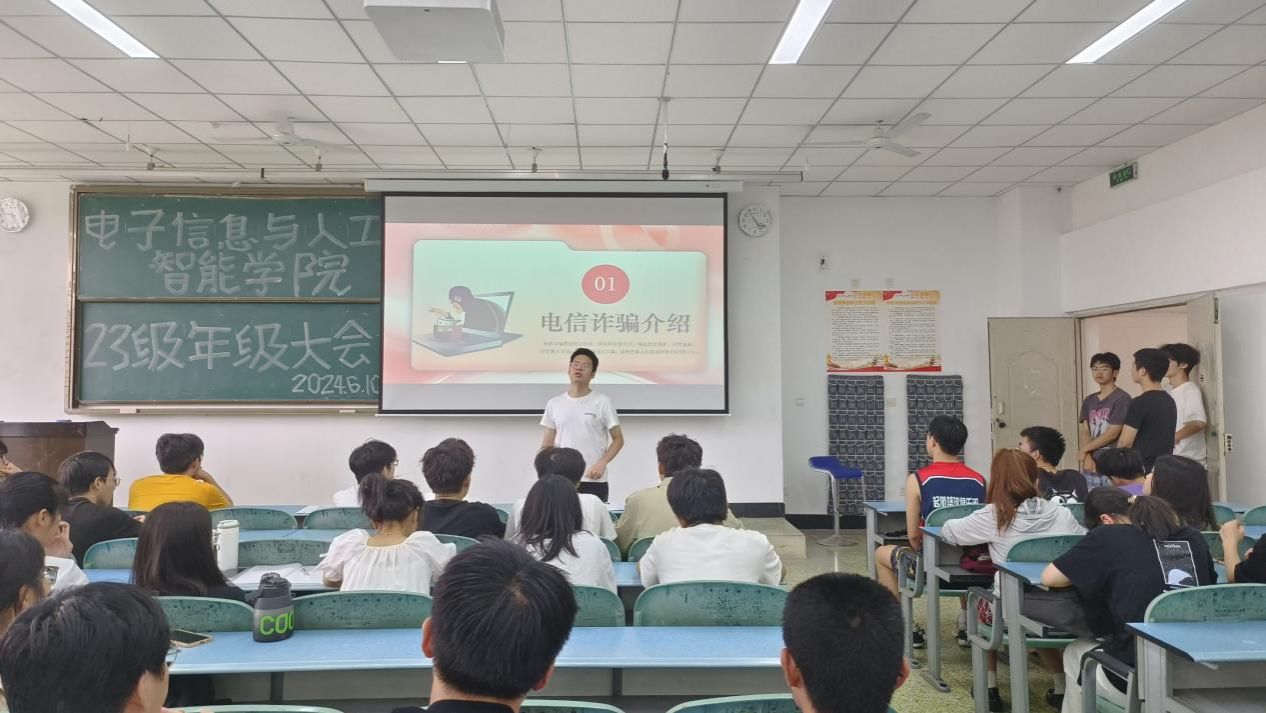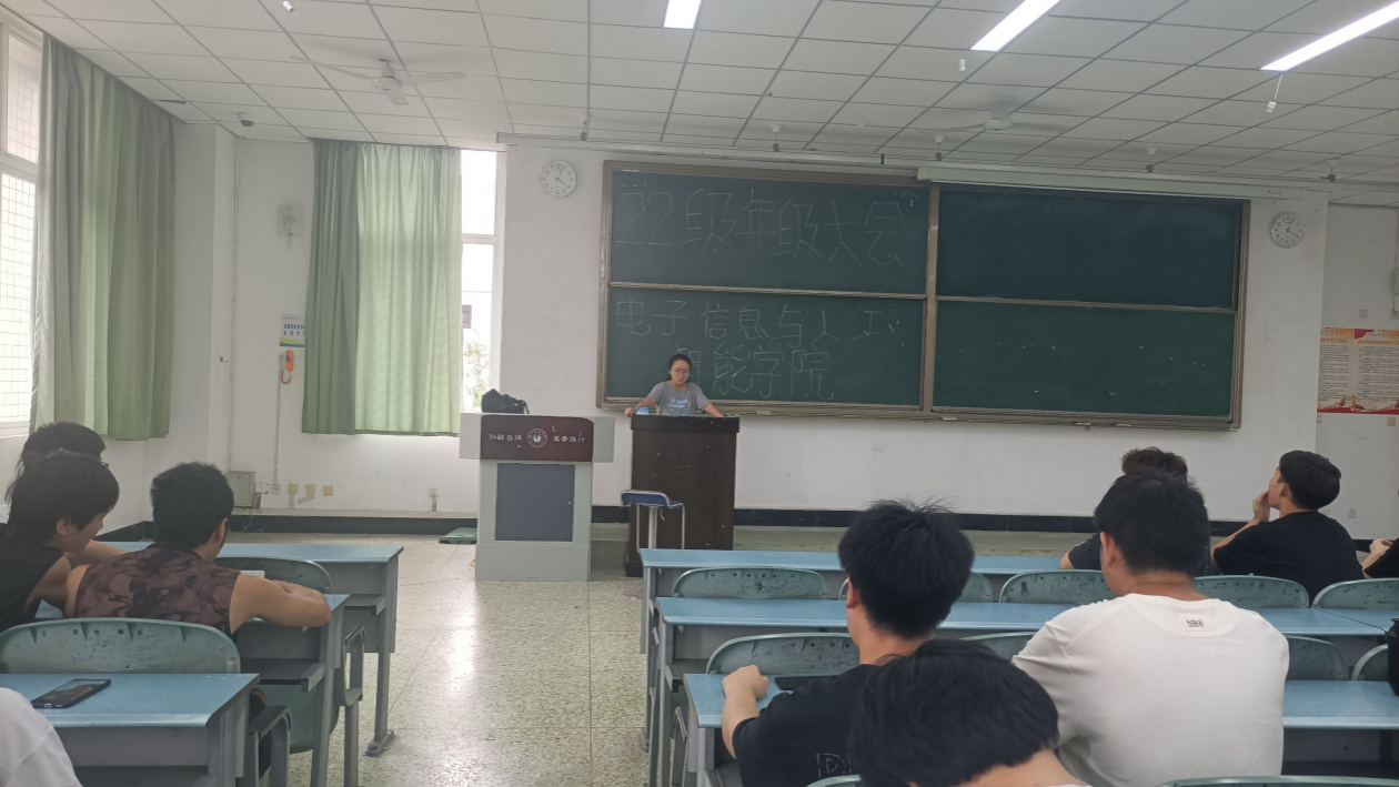 本网讯(文/张宇昊 图/官辉)6月10日,电子信息与人工智能学院在行知楼101、125召开21级年级大会,行知楼301、325召开22级年级大会,行知楼401、425召开23级年级大会。本次会议由AI之家辅导员工作室主办,分团委书记强光平,辅导员雷雄锴、肖苗、狄红霞主持,电子信息与人工智能学院全体学生共同参与。