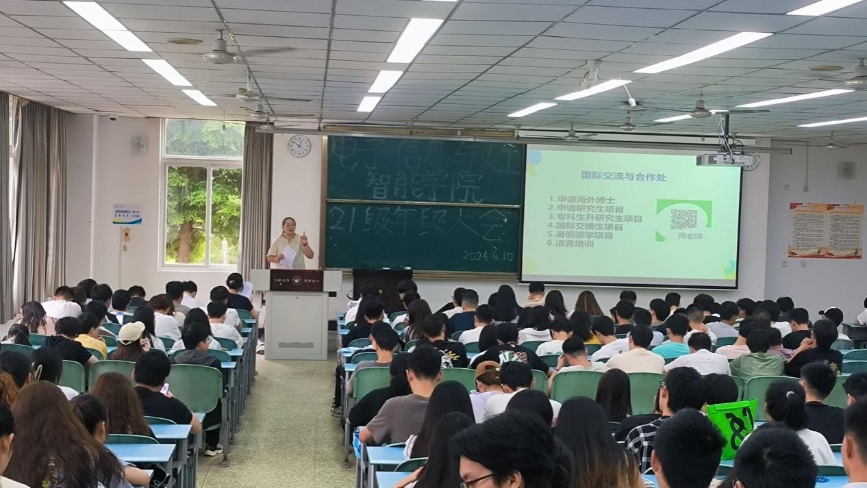 最后,由国际交流处的周老师针对21级的学生详细介绍了海外申硕的流程、条件和注意事项,并分享了海外留学的经验和见闻。鼓励有意向的同学积极了解相关信息,提前做好规划和准备,争取获得更好的求学机会和体验。此外,周老师还就海外读书可能遇到的文化差异、语言沟通等问题进行了深入剖析,并提出了应对策略和建议。他们希望同学们能够积极适应新的环境和文化,拓宽国际视野,增强跨文化交流能力。