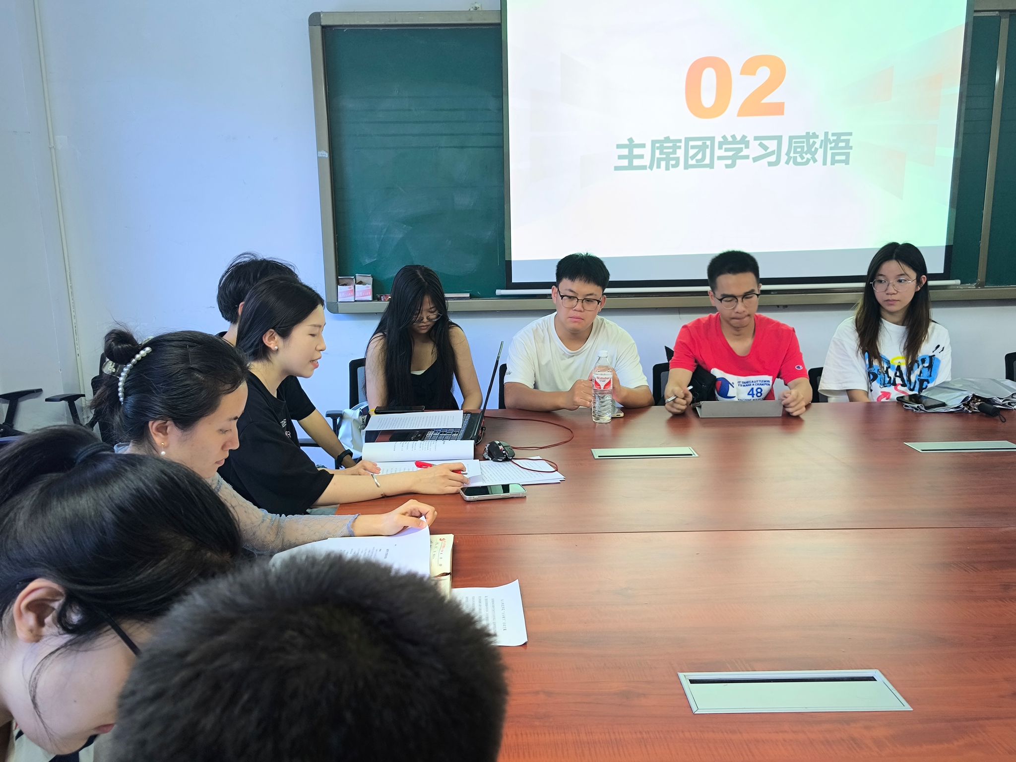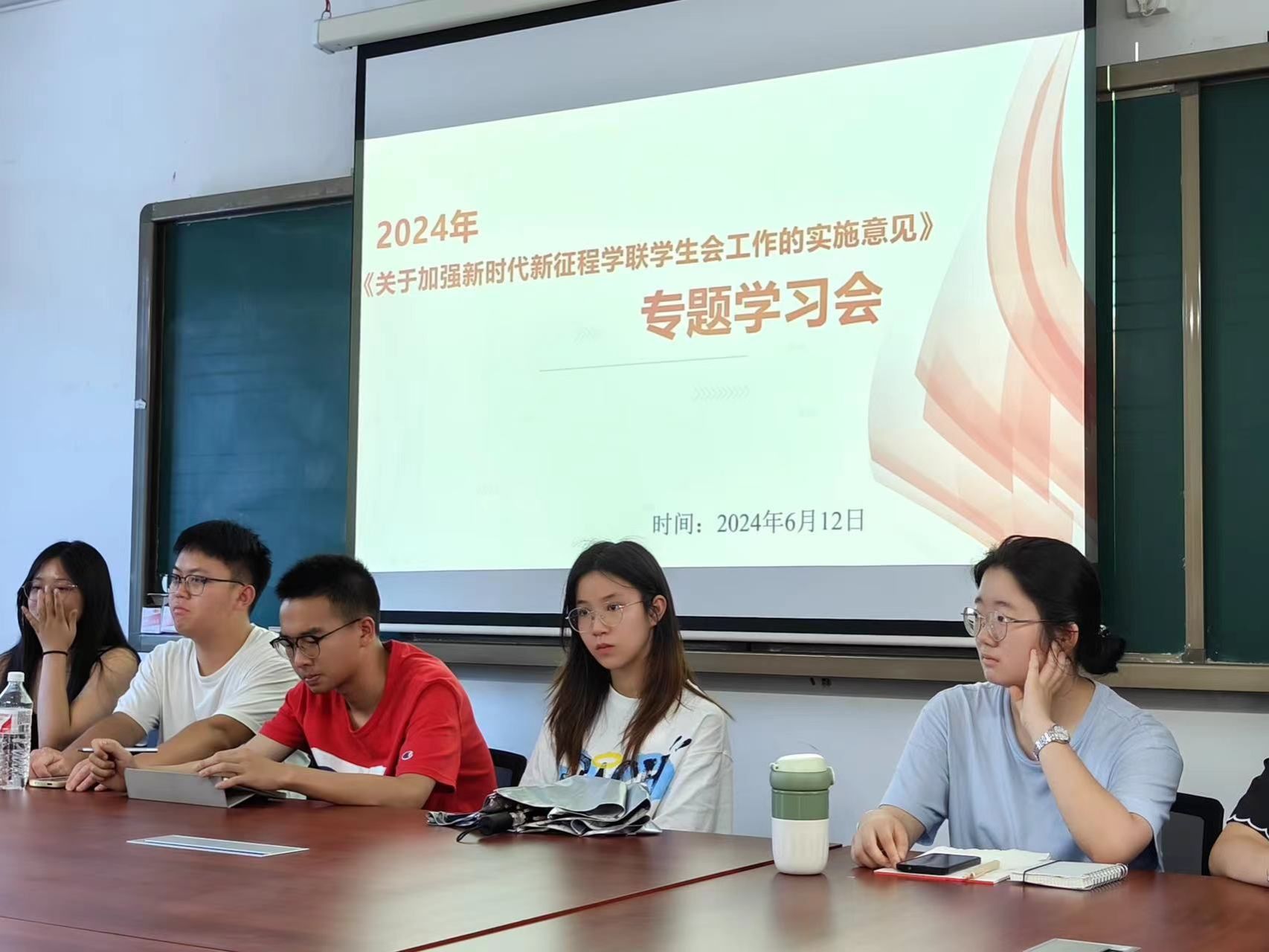 本网讯(文/杨蓓蓓、刘府君 图/李金婷)6月12日,校学生会在团委会议室开展集中学习会,会议围绕《关于加强新时代新征程学联学生会工作的实施意见》(下文简称《实施意见》)展开研讨。素质拓展与社团管理中心主任杨蓓蓓主持会议并带头谈学习感悟,全体校学生会成员参加会议。