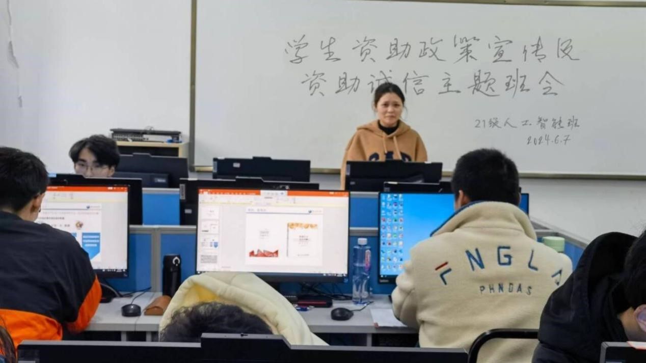 本网讯(文/张莎莎 图/曾月霞)为深入推进资助育人工作,营造良好氛围,电智学院于近日在行知楼、特教C幢、实训楼等部分教室开展诚信教育主题班会和资助政策宣讲主题班会,本次班会由AI之家辅导员工作室主办,学院学生分会协办,各班班长主持,电子信息与人工智能学院全体学生共同参加。