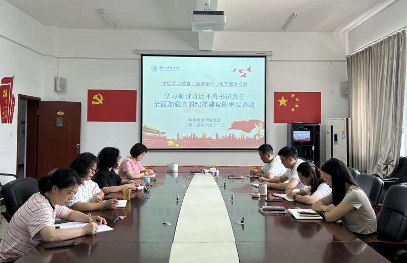 本网讯(文/杨燕 图/李晓畅) 6月11日上午,特殊教育学院党委二级理论中心组召开党纪学习教育6月专题学习研讨会,学习研讨《习近平总书记关于全面加强党的纪律建设的重要论述》,学院党委二级理论中心组全体成员参加了学习研讨。会议由学院党委书记刘宗泉主持。