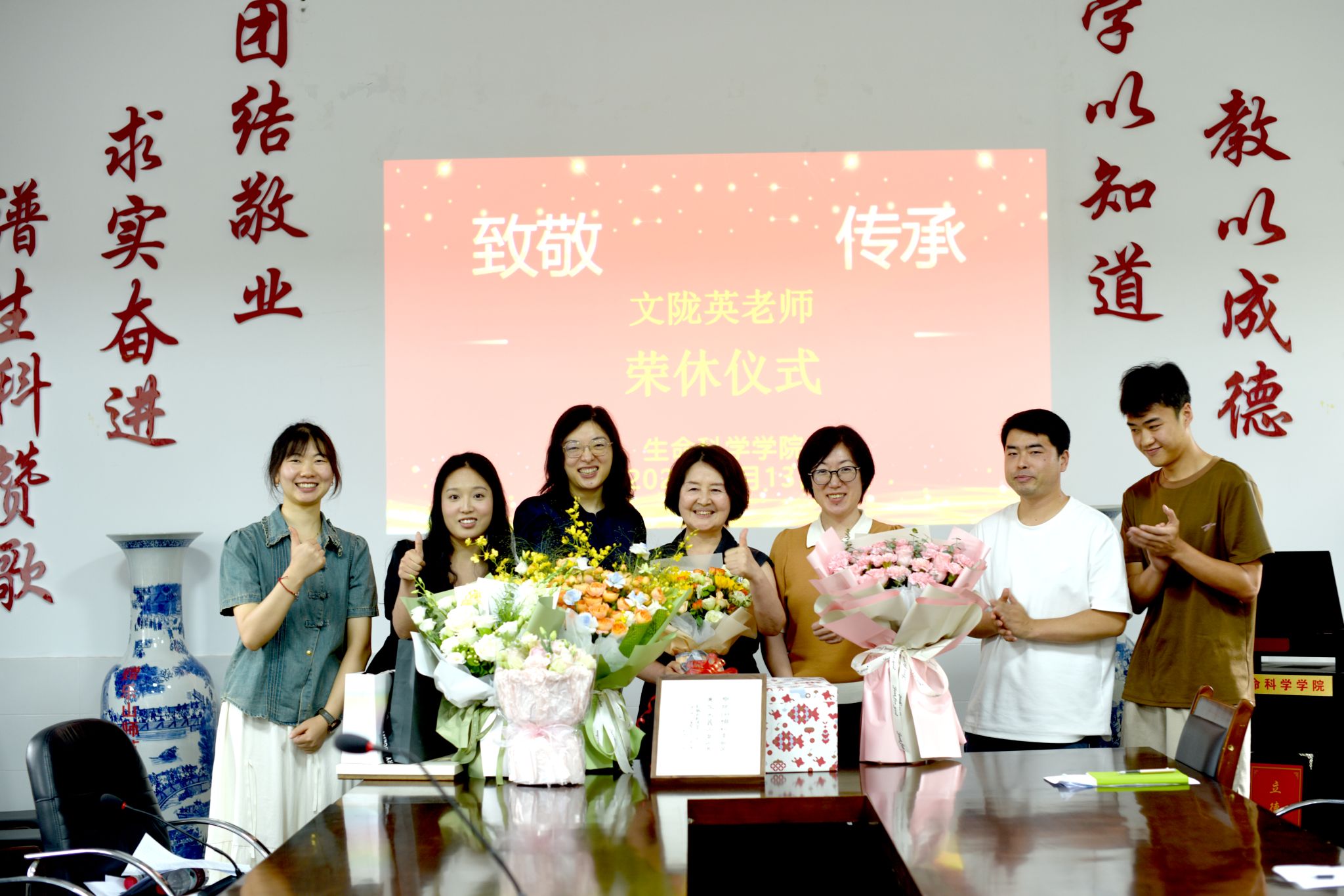 本网讯(文、图/易秀琴)6月13日下午,生命科学学院在博雅楼105会议室为文陇英老师举行了荣休仪式,学院领导班子成员,全体教职工及校友代表、学生代表参加了文老师的荣休仪式,荣休仪式由学院党委书记杨益主持。