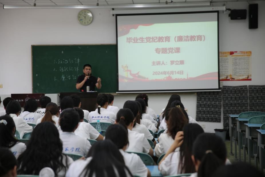 党课最后,罗立顺向毕业生党员们提出期望,希望党员们常怀敬畏之心,学纪知纪明纪守纪;严格自我约束,时刻自省自觉自律;强化责任担当,清正廉洁奋发有为。愿广大毕业生党员牢记母校嘱托,奔赴下一场山海,谱写不负青春的奋斗之歌!