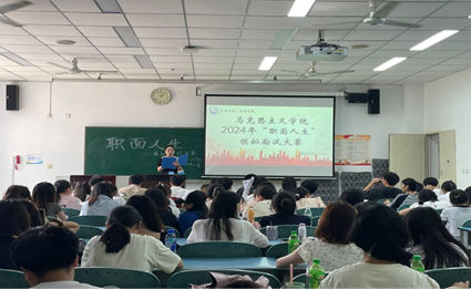 本网讯(文图/向姣)为进一步提高我院学生职业规划能力和求职技巧,自信应对日趋严峻的就业市场,马克思主义学院于6月14日在行知楼115教室举办了2024年“职面人生”模拟面试大赛。本次大赛由马克思主义学院党委副书记钟永淑,分团委副书记黄高静,20级部分就业代表担任评委,马克思主义学院2021级学子参与。