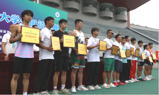 乐山市体育中心副主任杨冰宣读体育道德风尚奖获奖名单,乐山师范学院、成都理工大学工程技术学院、绵阳城市学院等20所高校获得该奖项。2024年四川省大学生田径比赛赛事总管罗力宣读本次比赛成绩,成都体育学院、西南交通大学、西华师范大学获得高水平组团体总分前三名,成都体育学院、四川师范大学、四川工商学院获得体育专业组团体总分前三名,中国人民武装警察部队警官学院、内江师范学院、西南科技大学获得校园组团体总分前三名,川北幼专师范高等专科学校、泸州职业技术学院、四川托普信息技术职业学院获得高职高专组团体总分前三名,四川化工职业技术院、成都纺织高等专科学校、四川建筑职业技术学院获得高职校园团体总分前三名。主席台嘉宾为各组团体1-8名进行了颁奖。