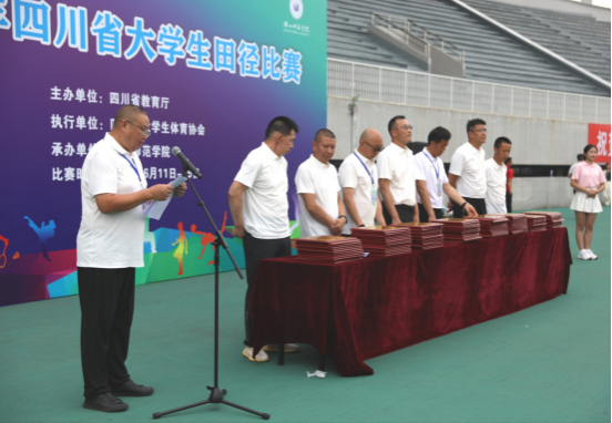 本网讯(文/刘颖 图/孟繁增、任志文、李美萱) 6月14日晚,由四川省教育厅主办、四川省大学生体育协会执行、乐山师范学院承办的2024年四川省大学生田径比赛在乐山体育中心闭幕。本次比赛作为全省大学生最高水平的田径赛事,来自全省90所高校的2000余名裁判员、教练员和运动员们参加了本次大赛,举办规模和参赛人数创历史新高,为全省高校田径运动员提供了-个展示水平、比拼技能的舞台,也为加强全省高校间的体育合作与交流,丰富校园体育文化生活,促进四川省大学生体育事业高质量发展注入新的活力。