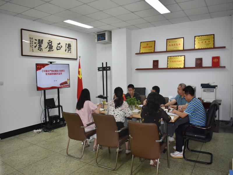 本网讯(文/范鹏鹏 图/贾云强)6月13日,纪委办党支部在弘毅楼613召开支部大会。会上,徐娇同志以“《中国共产党纪律处分条例》(以下简称《条例》)常用条款理解与运用”为题,讲授专题党课。