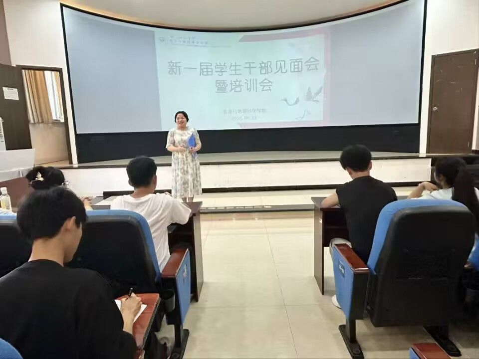 本网讯(文图/杨洋)近日,旅游与地理科学学院在旅院楼3D实验室召开新一届学生干部培训会,学院分团委书记、学生工作办公室主任江纳,新一届学生干部参加了会议。