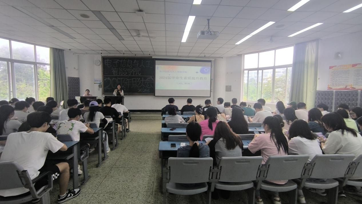本网讯(文图/狄红霞)近日,电子信息与人工智能学院于行知楼214、314举办毕业生担当奋斗教育、素质提升教育、校友意识教育等系列教育活动。本次活动以“青春留忆,共赴远方”为主题,旨在进一步激发毕业生们的担当精神,提升他们的综合素质,同时增强校友间的凝聚力与归属感。本次活动由电子信息与人工智能学院24届毕业生辅导员谭红梅主持,24届毕业生共同参与。