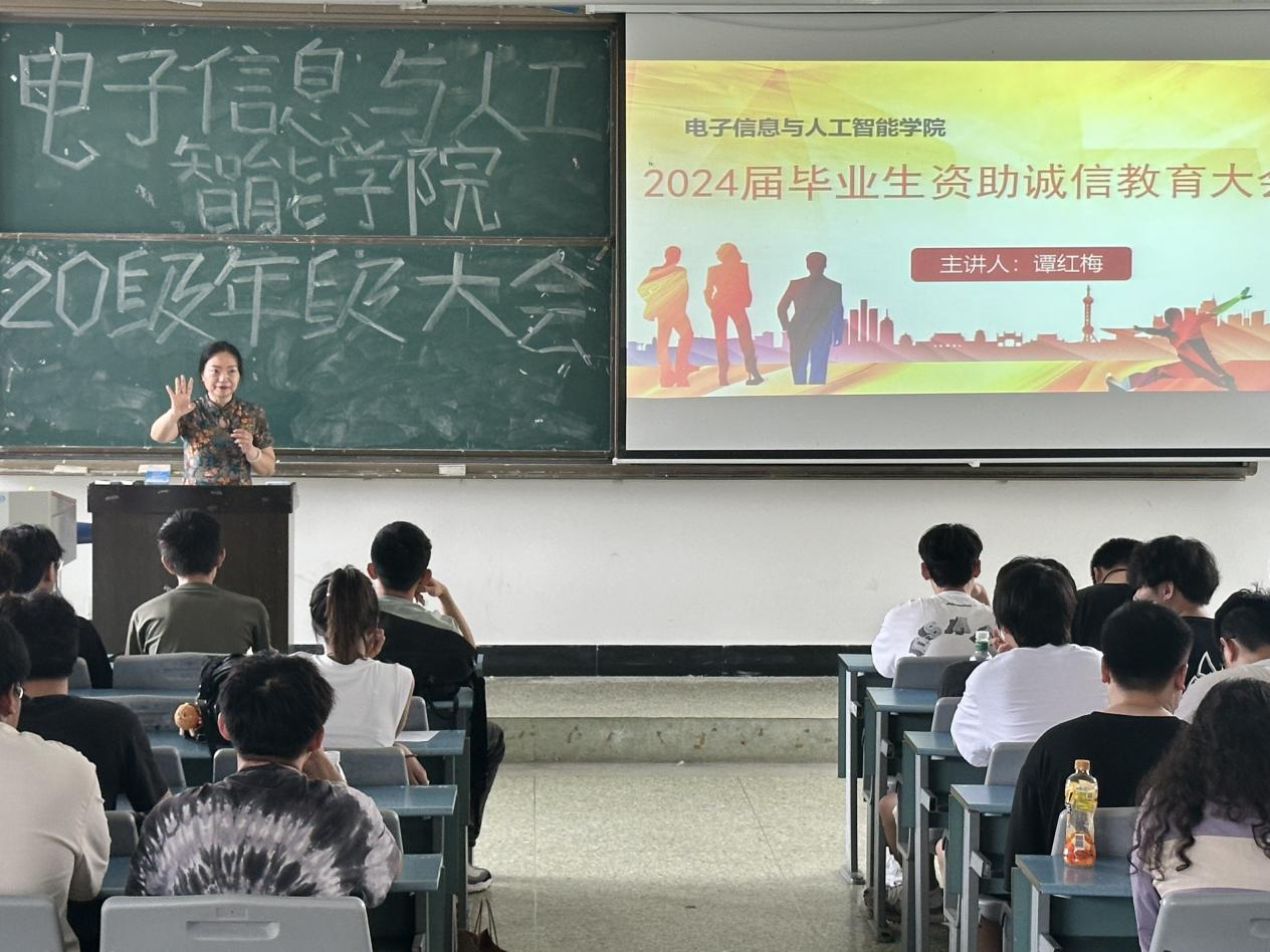 本网讯(文图/狄红霞)近日,电子信息与人工智能学院于行知楼214、314举办毕业生法制意识、入职适应、安全稳定、党员奉献、资助诚信等系列教育活动。本次活动以“青春留忆,共赴远方”为主题,旨在让即将踏上新征程的毕业生们能够更好地适应社会环境,提高个人综合素质,发挥党员的先锋模范作用,为未来的工作和生活奠定坚实的基础。本次活动由电子信息与人工智能学院24届毕业生辅导员谭红梅主持,24届毕业生共同参与。