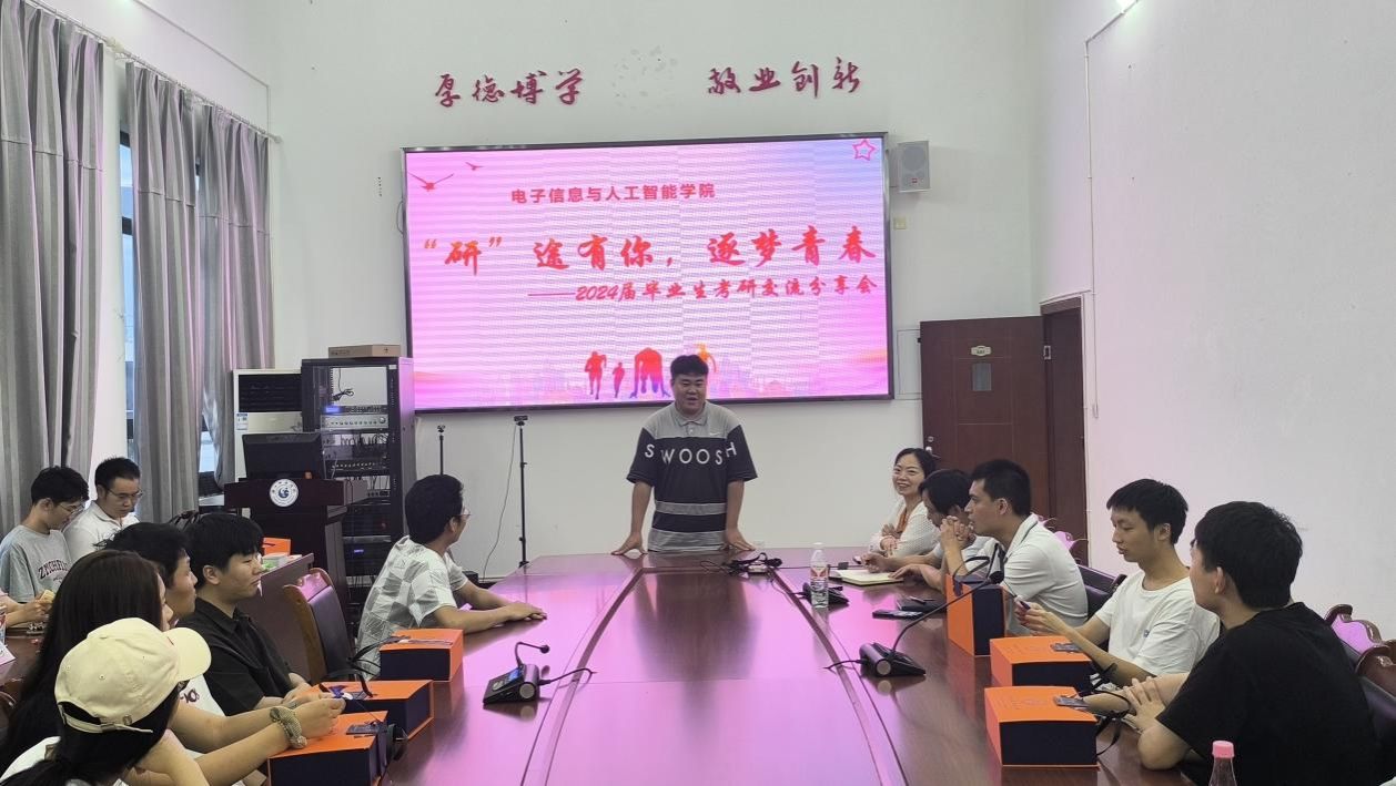 本网讯(文图/狄红霞)近日,电子信息与人工智能学院于特教C501举办了2024届毕业考研纪念会暨考研考公经验分享会。会议旨在表彰2024届考研成功的毕业生,同时激励在校生勇敢追求梦想,为即将踏上考研考公之路的学生提供宝贵的经验和建议。会议邀请了电子信息与人工智能学院党委副书记李骏、分团委书记强光平、辅导员谭红梅、雷雄锴、狄红霞,电智学院24届考研成功的毕业生以及21级部分学生参加。