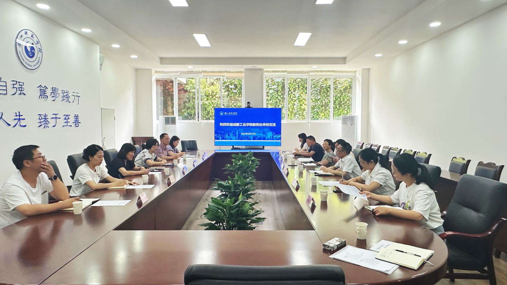 本网讯(文/代丽、杨玉箫 图/杨玉箫)6月19日下午,成都工业学院教务处副处长刘俊伯、谢春同志一行6人来校交流。交流座谈会议在弘毅楼211会议室召开,会议由教学部副部长谢延明主持。