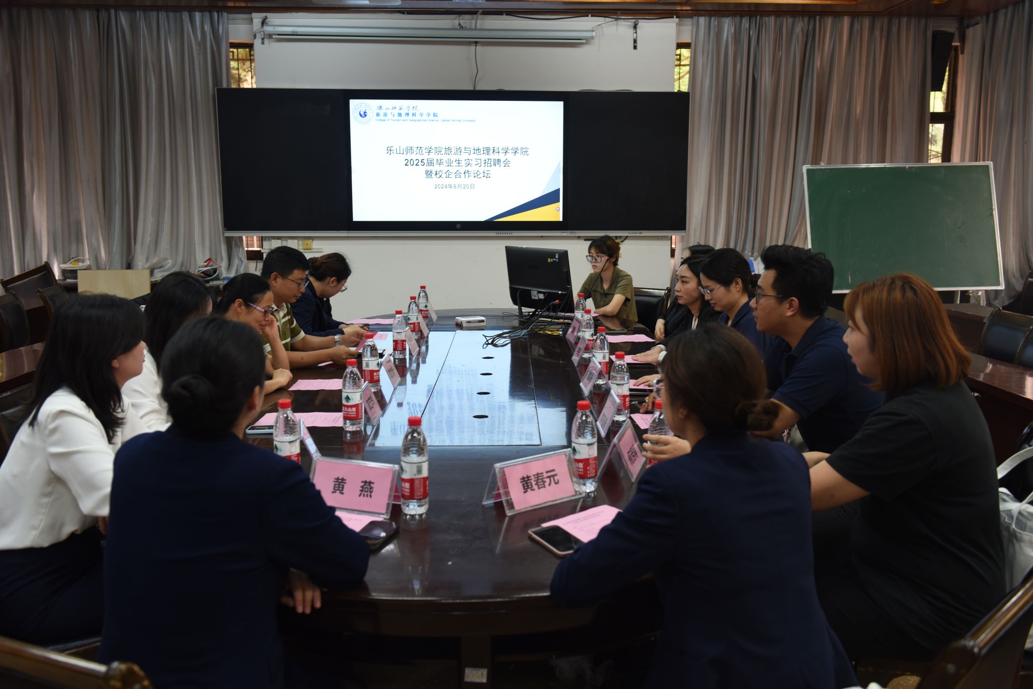 本网讯(文/卿婷 图/刘涛)6月20日下午,旅游与地理科学学院在旅院楼102室召开了2025届毕业生实习招聘会暨校企合作论坛。学院党委副书记、院长郭剑英,副院长孙永兴,辅导员郑曾俊以及各校企合作基地代表参加了此次论坛。