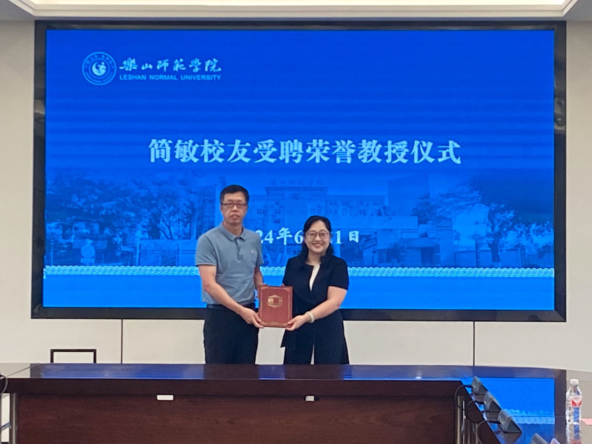 最后,李朝晖为简敏教授颁发“荣誉教授”聘书。