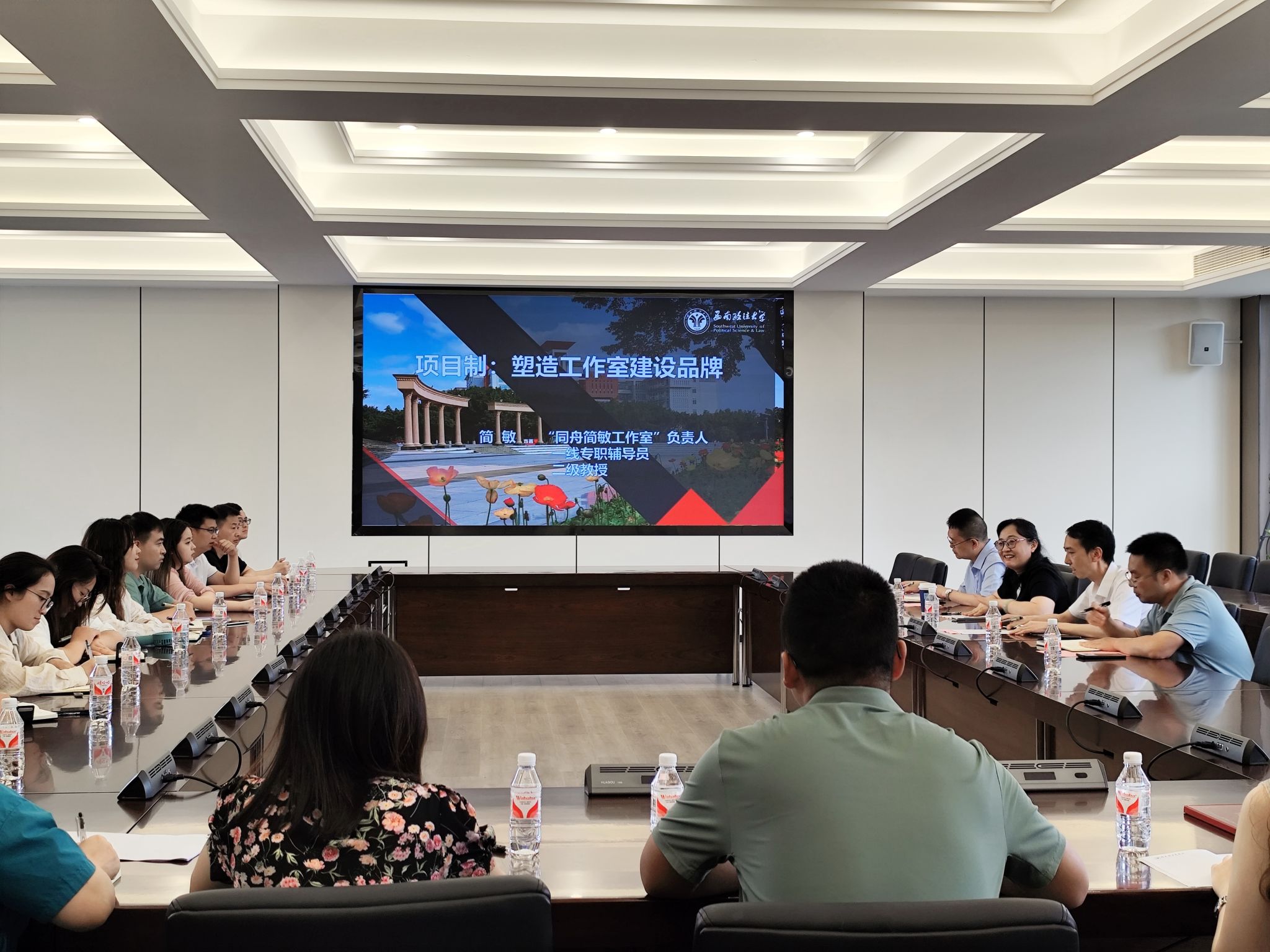 随后,简敏以“项目制:塑造工作室建设品牌”为主题进行交流发言。秉承“成就学生就是成就自己”的价值理念,简敏详细讲解了辅导员工作室的创立背景、内部组织架构、工作理念以及一系列特色活动。