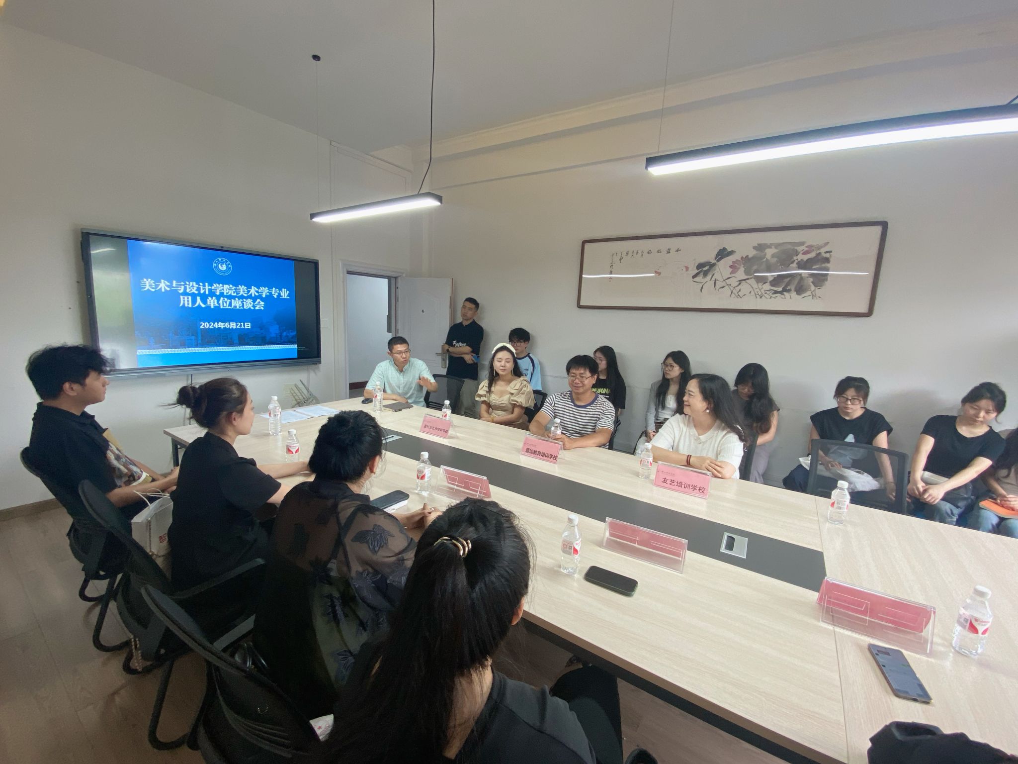 随后,各用人单位代表纷纷发言,就美术学专业毕业生的综合素质、专业技能和就业需求等方面进行了深入交流。他们普遍认为,美术与设计学院的毕业生具备扎实的专业基础和良好的创新能力,深受学校和企业欢迎。同时,他们也提出了宝贵的建议,希望学院能够进一步加强实践教学环节,提高学生的动手能力和解决实际问题的能力,特别要加强学生对社会认知、专业技能、服务意识的培养。