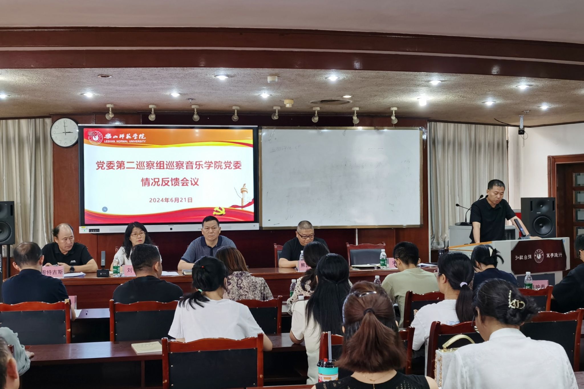 第二巡察组组长熊泽文代表巡察组反馈了对音乐学院党委的巡察情况,指出音乐学院党委存在统筹推动学院高质量发展能力不足、运用党的创新理论落实立德树人根本任务方面有差距,课程思政建设质量不高,红色音乐故事特色党课延续性不足,品牌影响力下降,以及在师资队伍建设、学科建设、教学管理等方面存在的短板和不足,并提出了整改意见。
