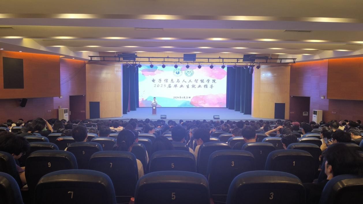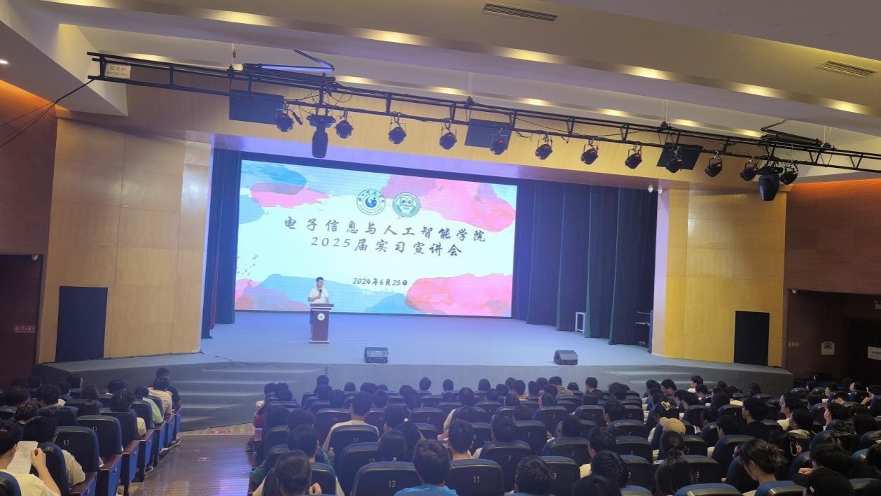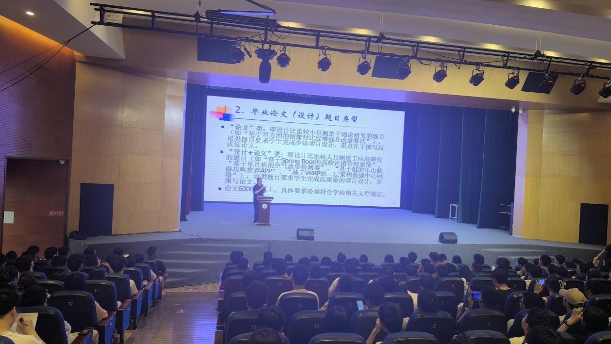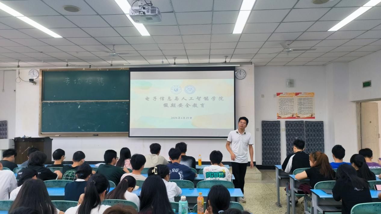 本网讯(文/官辉 图/张宇昊)6月23日,电子信息与人工智能学院为了进一步加强学生的期末考试诚信教育,提高毕业生的考研就业竞争力,以及深化对毕业论文撰写和实习的认知,特别举办了一场综合年级大会。本次会议由AI之家辅导员工作室主办,电智学院党委副书记李骏、电智学院专任教师项炜、考研专任指导教师敬思远、分团委书记强光平、辅导员雷雄锴、肖苗、狄红霞主讲,全学院各年级的学生共同参与。