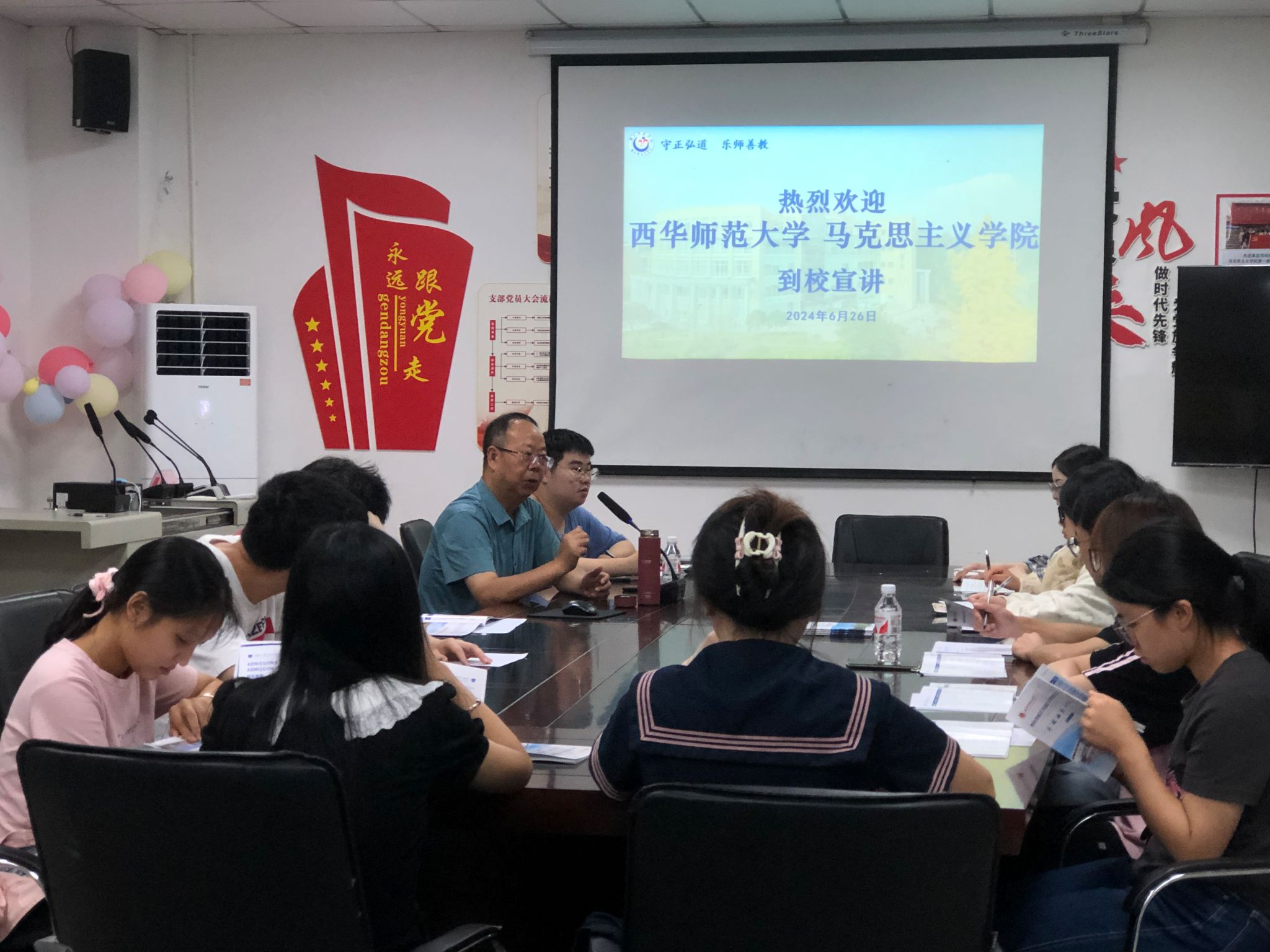 本网讯(文图/黄高静)为了让考研学子更好地选择学校和掌握复习方法,6月26日,西华师范大学马克思主义学院曹均学教授到乐山师范学院马克思主义学院开展研究生报考宣讲。