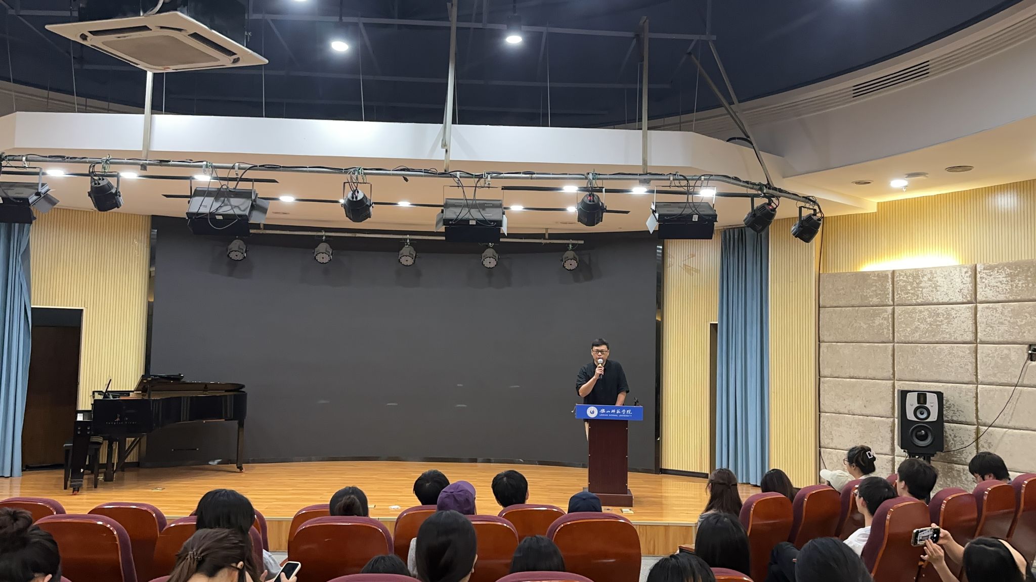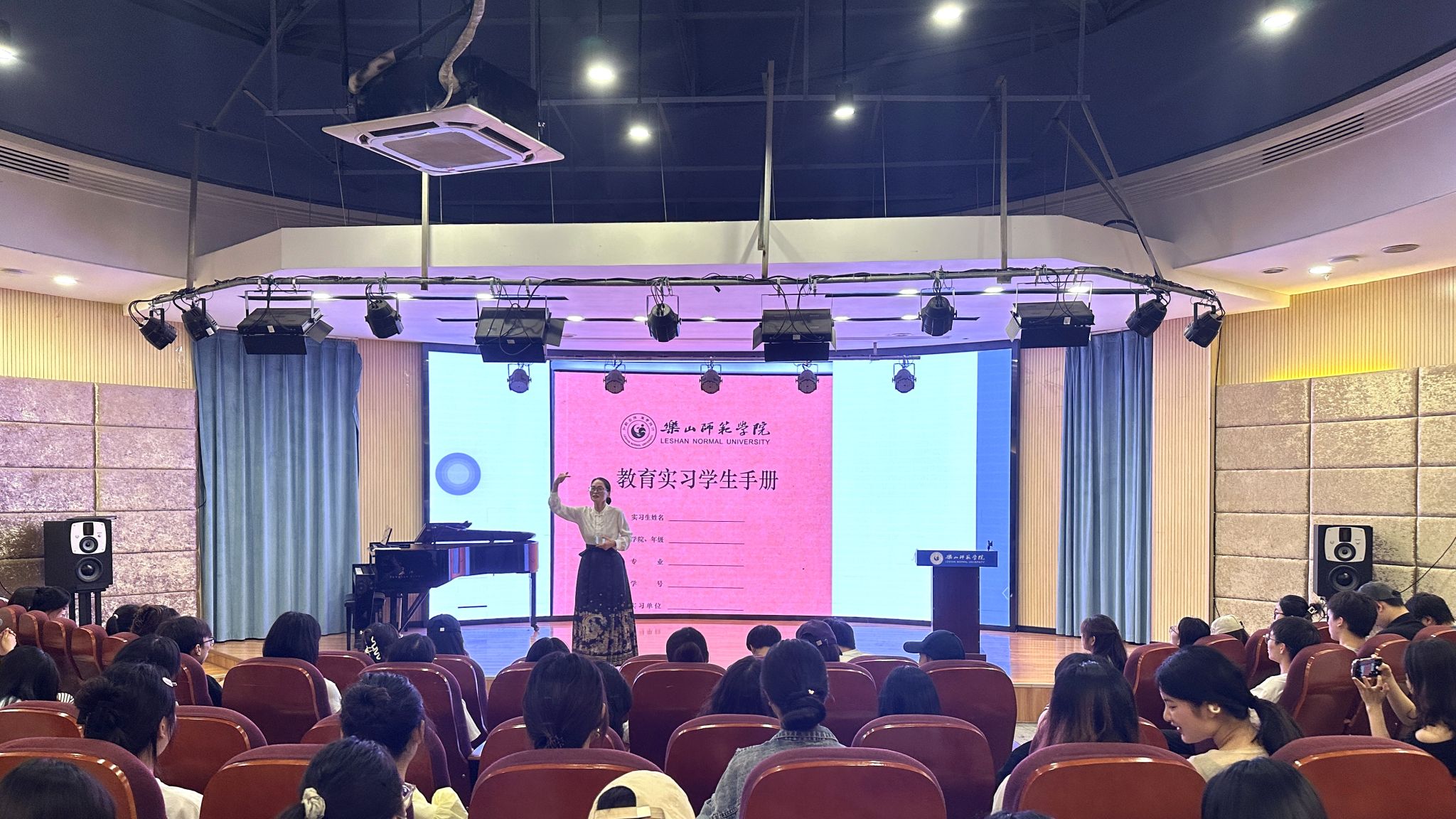本网讯(文图/郭元红)6月26日,音乐学院在邦泰报告厅召开了2025届实习动员大会。音乐学院副院长吴映春、教师教育实践中心主任杨小丽、音乐学院学生办公室副主任周琼怡、实习带队教师王菊、2021级辅导员郭元红、2024届优秀实习生代表刘佳佳同学以及2021级全体学生参加了此次会议,会议由郭元红主持。