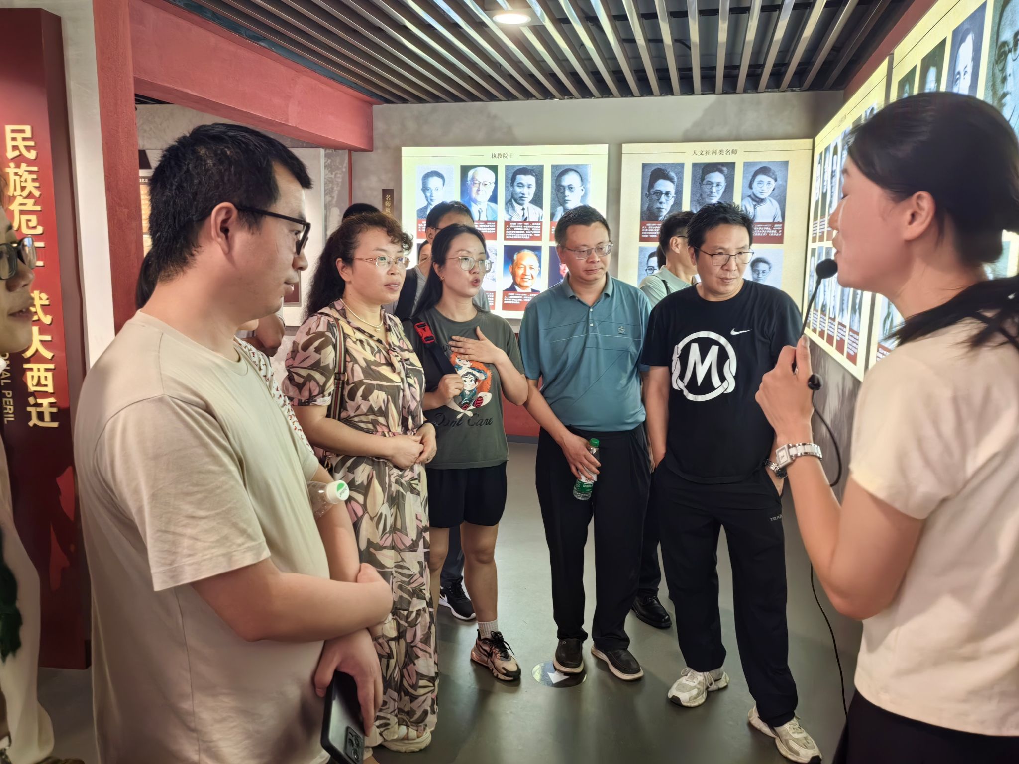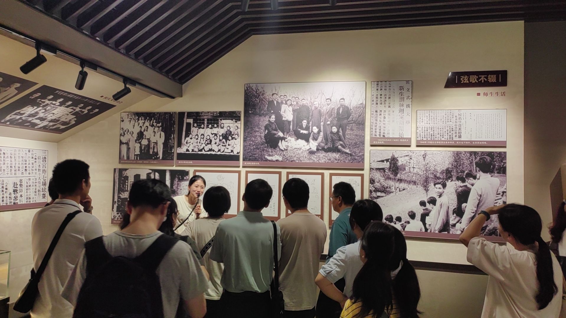 随后,大家一起参观了“烽火西迁路——武汉大学在乐山”纪念馆,在抗日战争时期,武汉大学西迁至乐山,文庙成为校本部,使得这里成为文化精英汇聚之地,通过一段段文字,一张张图片,大家一起回顾了1938到1946年抗战时期武汉大学西迁乐山,办学八年的艰苦岁月,了解了在那一段艰难的岁月里,武大师生自强不息,迎难奋进,取得了辉煌成就,凝练了“学术至上、教育救国、自由民主、兼容并包、造福乡邦、服务社会”的乐山精神。