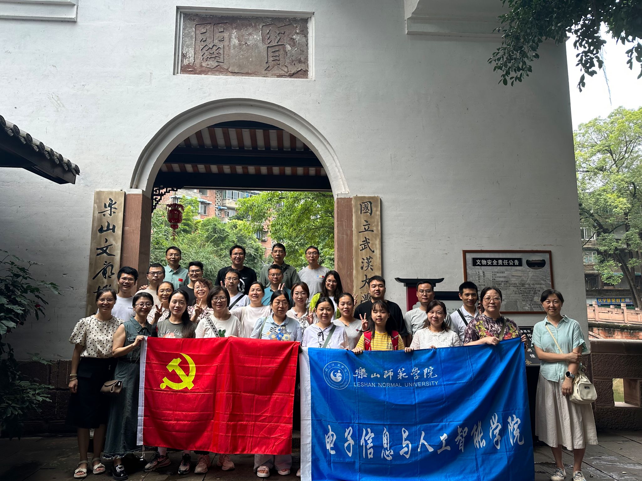 本网讯(文图/胡志惠)在学院申硕培育关键之年,学校“113”高质量发展之年,为明确纪律聚力量,团结一致攻难关,学院党委深入开展了有特色的教职工思想政治教育和党日活动。6月28日下午,电子信息与人工智能学院党委组织教职工参观了乐山文庙和武汉大学西迁乐山纪念馆,并进行了现场教学。