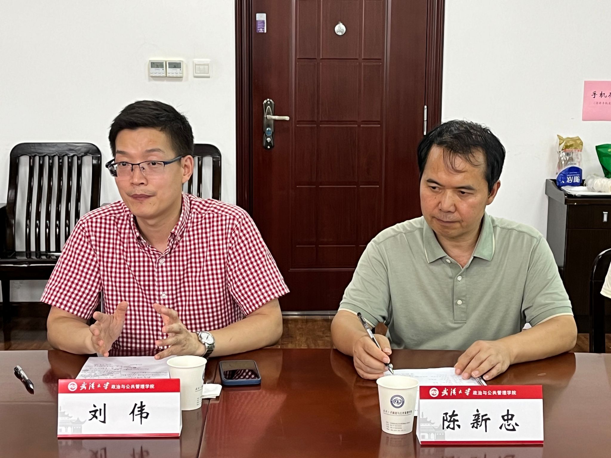 本网讯(文图/巴玉宁)6月28日至30日,学校党委常委、组织部部长、教育科学学院院长佘万斌教授一行9人前往武汉大学政治与公共管理学院调研交流。武汉大学政治与公共管理学院院长刘伟教授在雅各楼三楼会议室热情接待了佘万斌一行。交流座谈会由武汉大学政治与公共管理学院教育政策与管理系主任陈新忠教授主持。