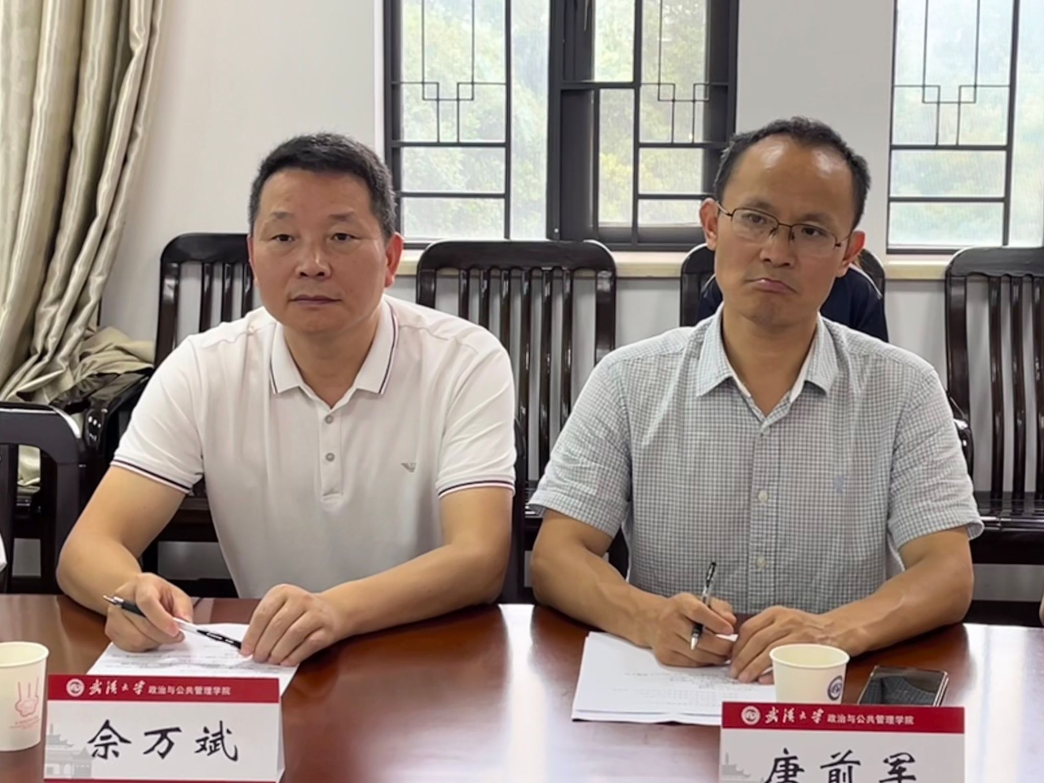 佘万斌对武汉大学政治与公共管理学院长期以来对我院在人才培养、教师读博、学科科研等方面的大力支持表示衷心的感谢,并重点就我院硕导申报、学术交流、联合培养研究生实习等方面工作发出倡议,积极主动寻求武大的支持和帮助。