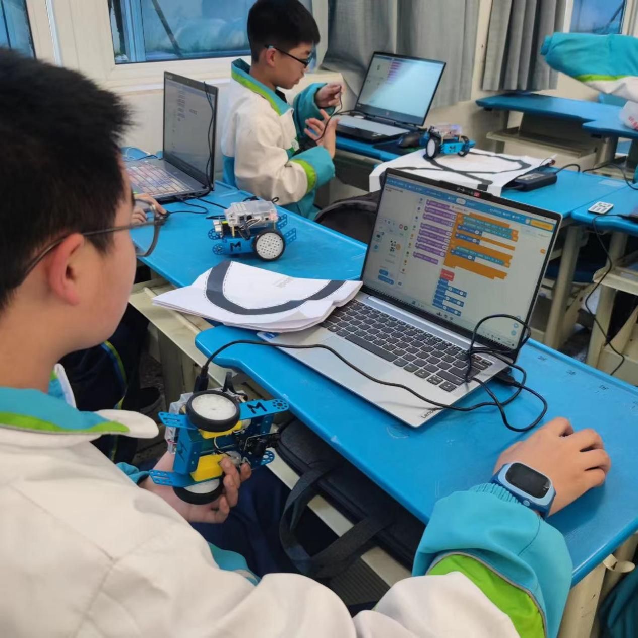 来自电子信息与人工智能学院的电子信息工程专业学生,担任创客课程的指导讲师,在乐山市实验中学和乐山师范学院附属小学为中小学生带来了生动有趣的创客培训。在培训过程中,深入浅出地讲解了智能小车的工作原理,详细展示了组装的每一步骤,并利用scratch平台指导学生进行程序编写。这一活动不仅检验了学生们对创客教育的兴趣与理解程度,同时也对授课教师的专业能力进行了全面考察。通过实时反馈,讲师们能够迅速发现问题,并及时调整教学策略,确保培训效果达到最佳。