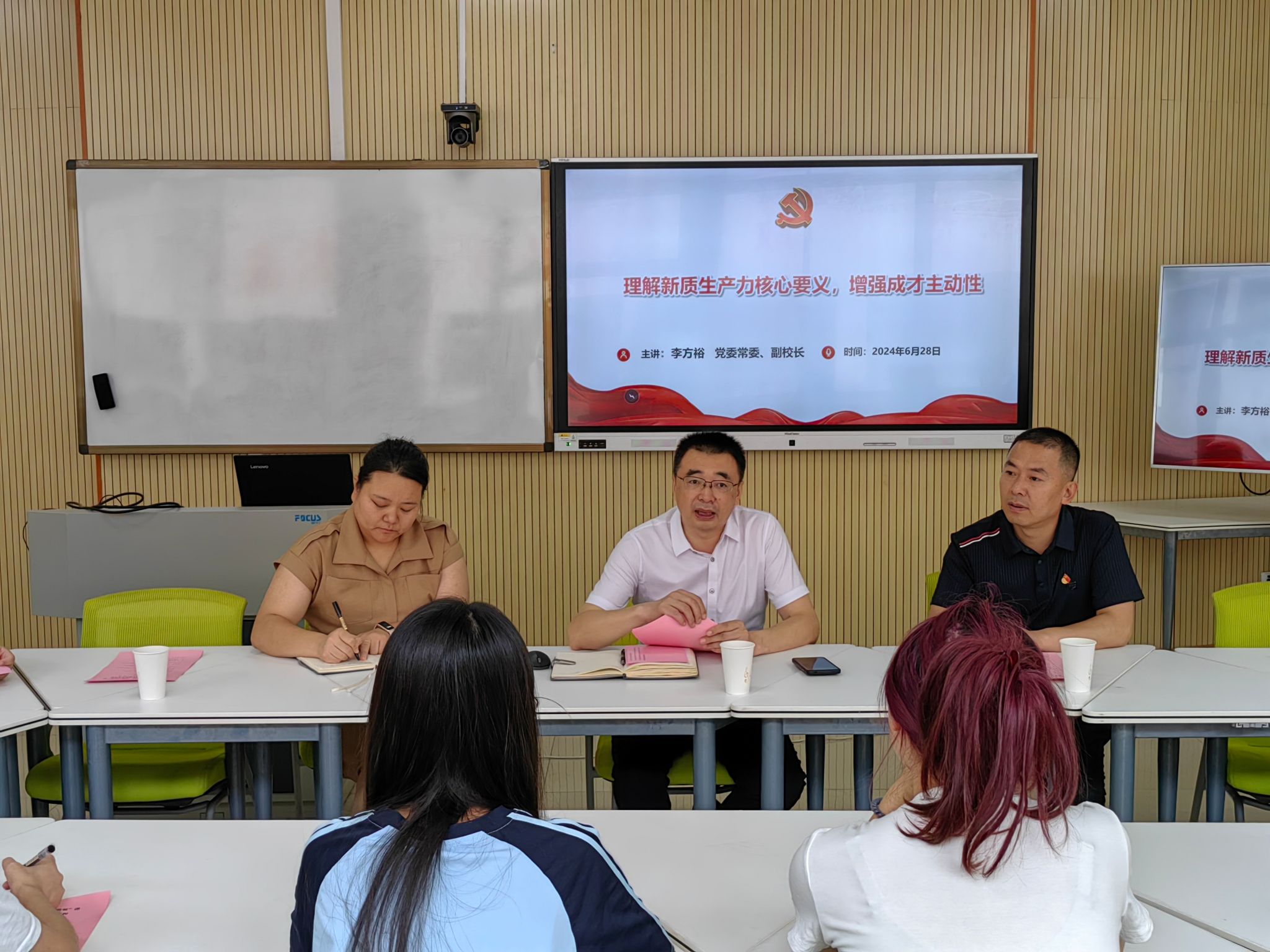 6月27日,校长刘进以“为新质生产力发展贡献青春力量”为题,为沫若学院、数理学院学生党支部讲授了一堂生动的思政课。他首先阐述了新质生产力提出的理论意义,强调了习近平总书记关于新质生产力的重要论述是习近平经济思想的重要组成部分,是马克思主义生产力理论中国化时代化的最新成果,为全面推进中国式现代化建设提供了科学理论指导和行动指南。他强调,新质生产力的提出,突显了科技创新在现代化建设中的核心地位,同时揭示了新时代对复合型、学习型、创新型人才的迫切需求。他希望青年学子要不断夯实专业基础,拓宽知识视野,通过实践锻炼提升创新能力,最终成为有理想、有担当、能吃苦、肯奋斗的新时代好青年,为实现中华民族伟大复兴的中国梦贡献青春力量。