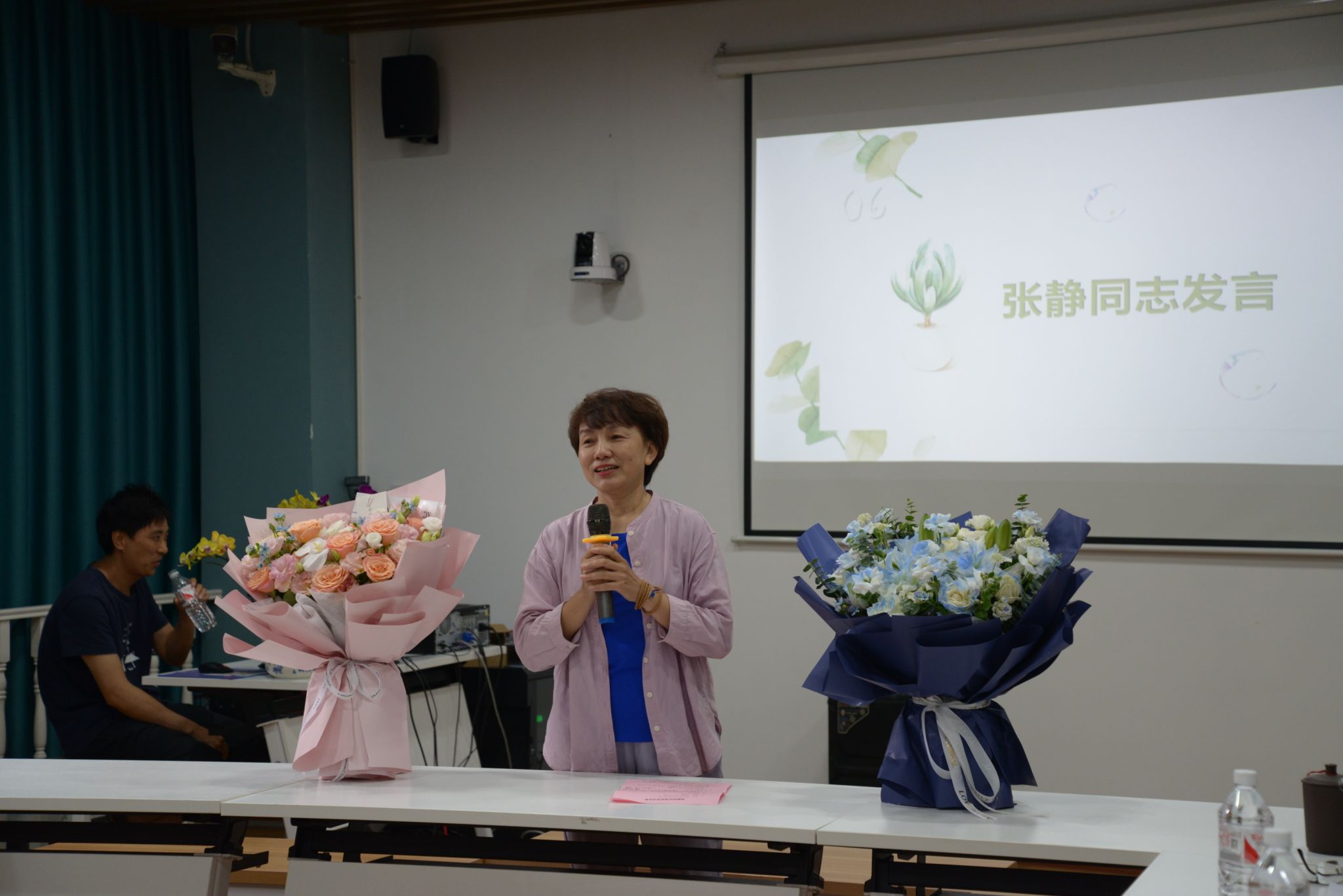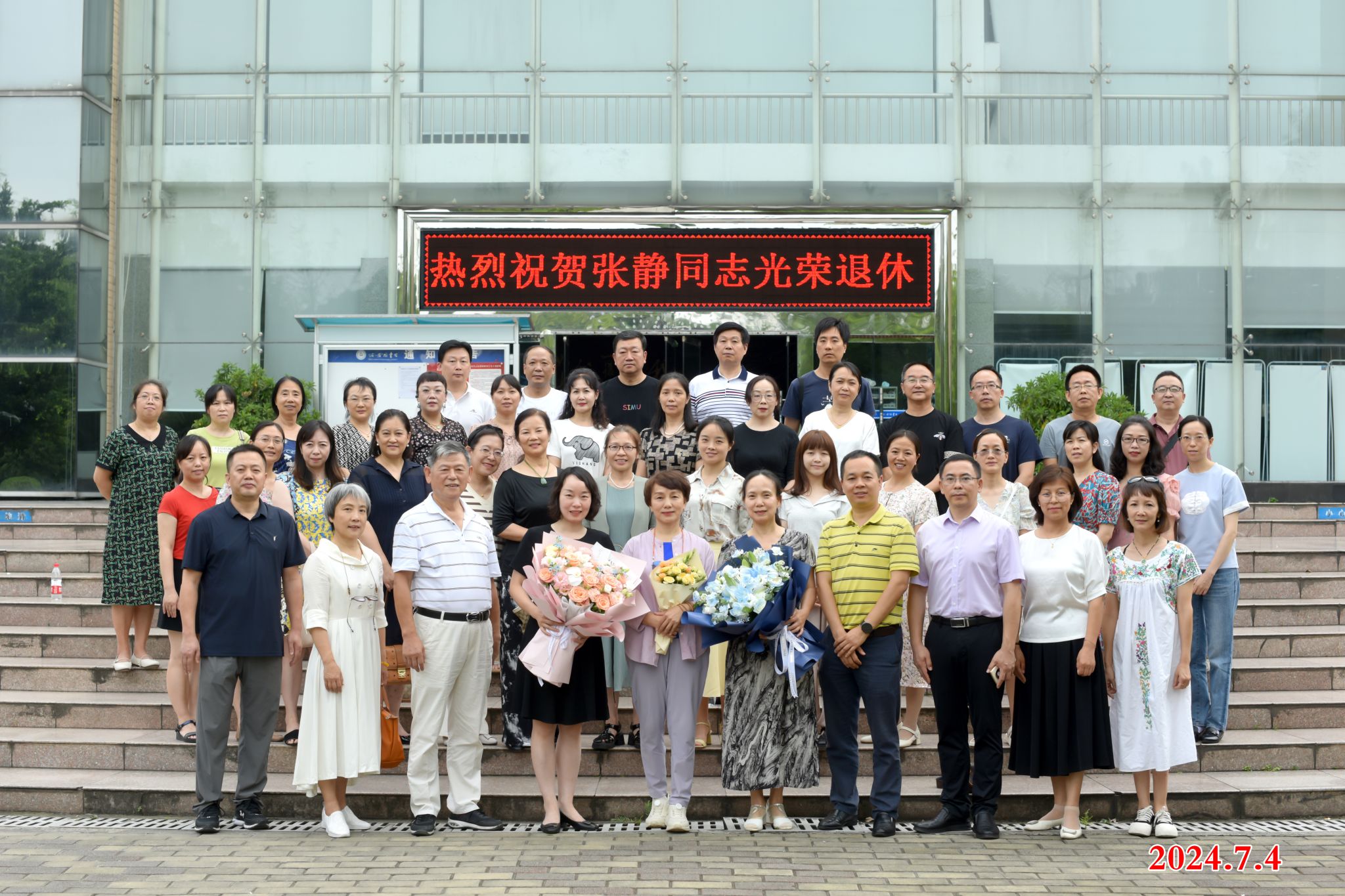 最后,钟英、徐丽姗代表大家为张静献上鲜花,所有参会人员合影留恋。“莫道桑榆晚,为霞尚满天。”张静同志荣休仪式圆满结束,再次祝张静退休生活如诗如画,充满欢笑与幸福。