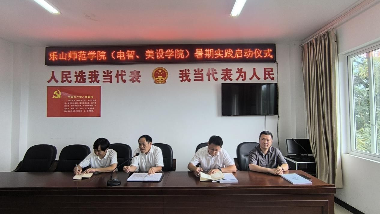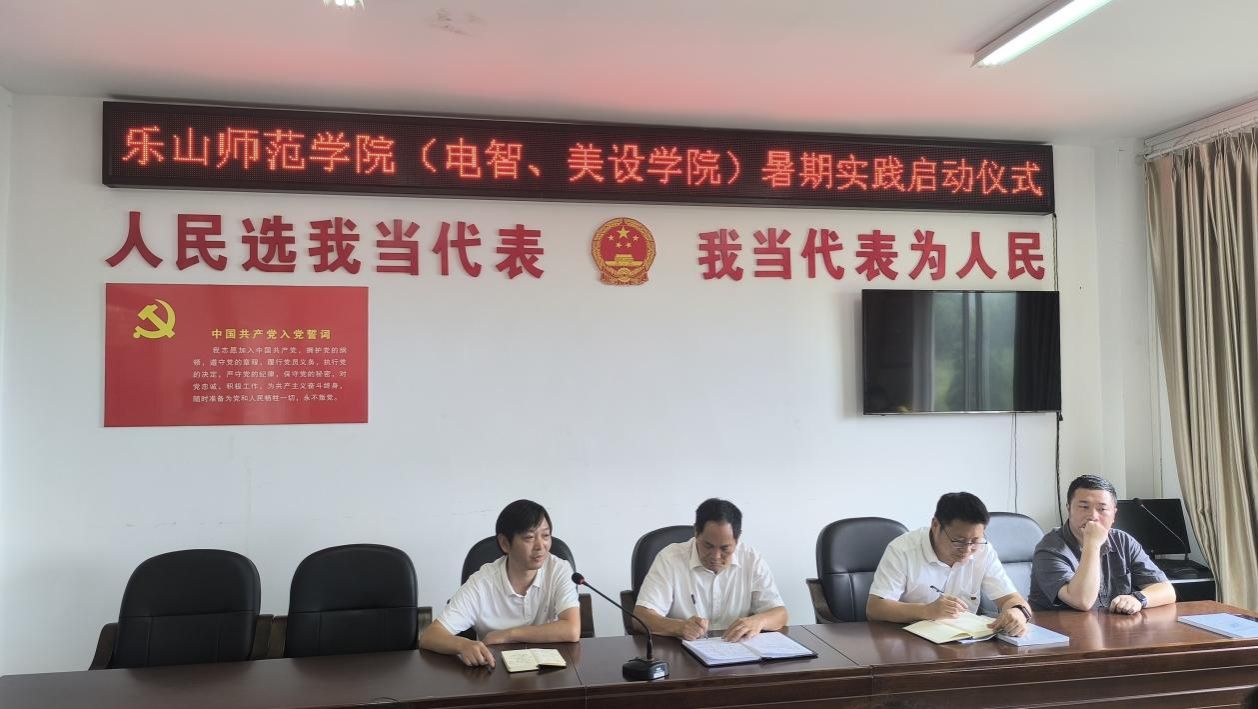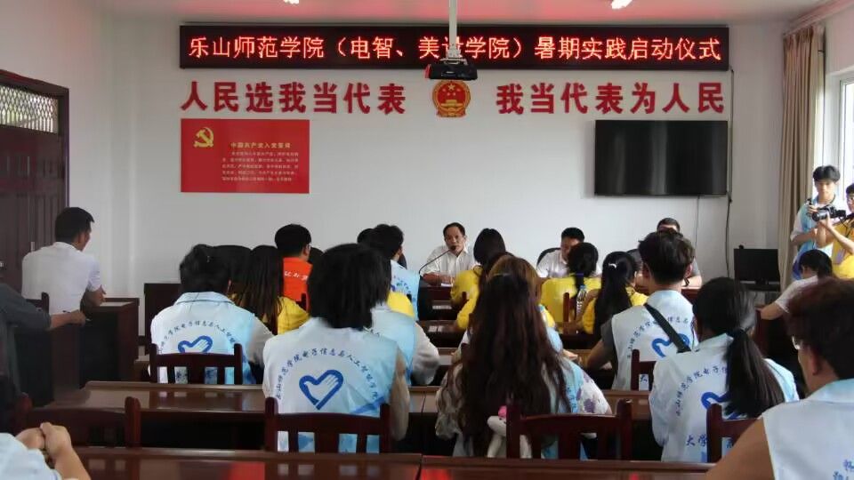 本网讯 (文/郭正兴,图/明爽)为引领广大团员、青年在社会课堂中受教育、长才干、作贡献,在观察实践中学党史、强信念、跟党走,持续激发爱党爱国爱社会主义的热情,厚植家国情怀,涵养进取品格。7月4日,电子信息与人工智能学院暑期“三下乡”社会实践团队在乐山市沐川县永福镇张村村村委会参加暑期“三下乡”社会实践活动启动仪式。仪式由乐山师范学院党委学生工作部驻村干部宋家伟主持,乐山市沐川县张村村村支部书记罗贵斌、乐山师范学院电子信息与人工智能学院党委副书记李骏、党委学生工作部劳动教育中心谢影老师、教师教育学院驻村第一书记资飞以及张村村村委会全体干部、电智学院的师生代表们共同参与。