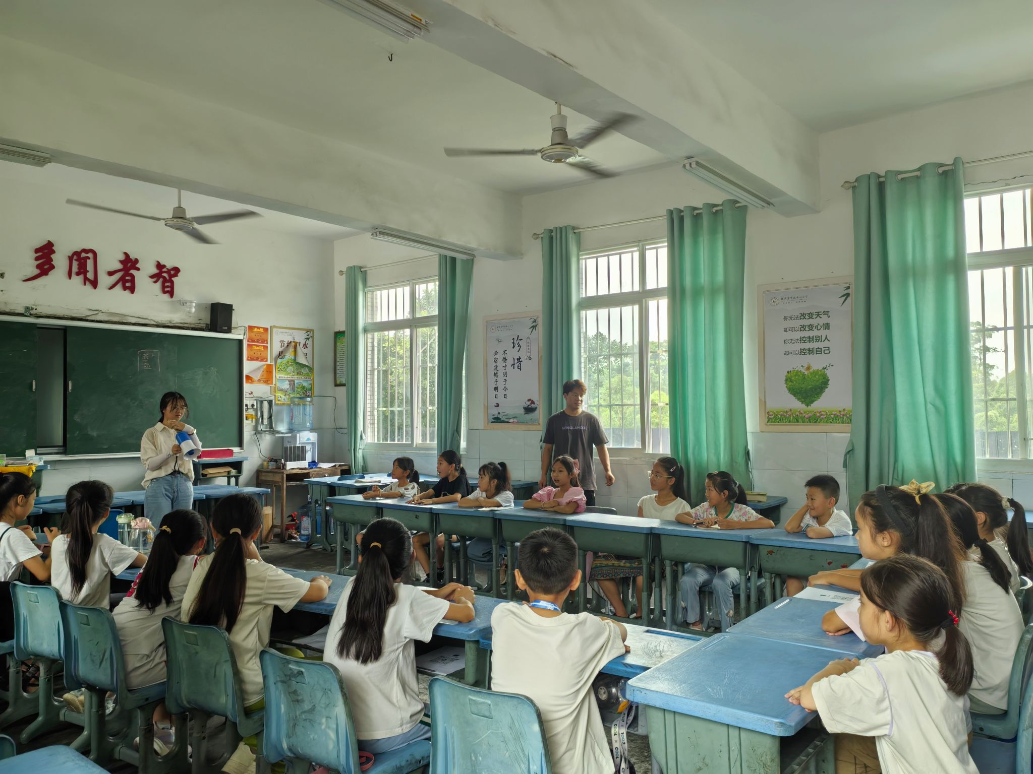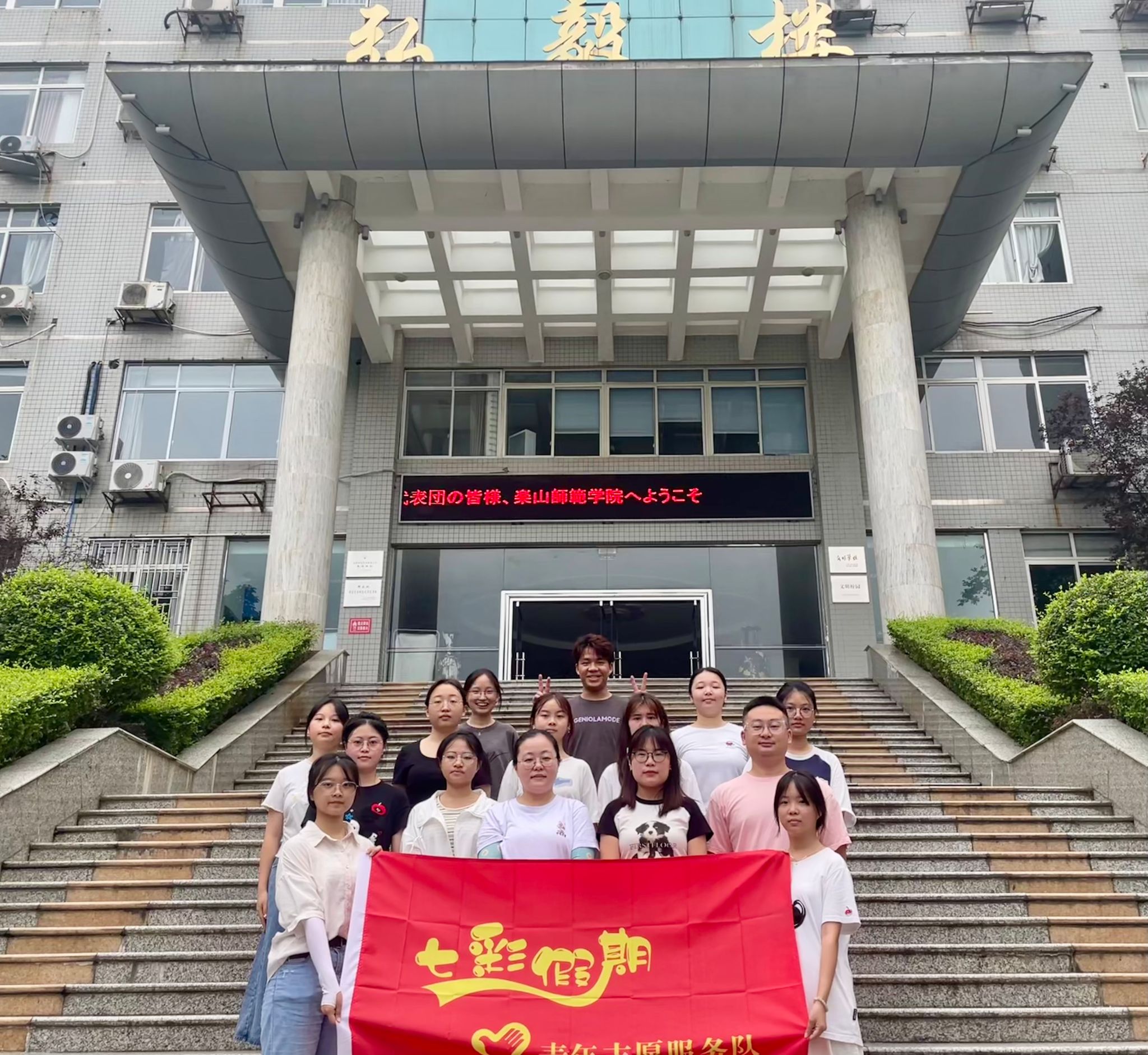 未来七天,志愿团队将围绕“七彩假期”,开展诗词讲解课程,普通话诗文朗诵、主题普通话演讲、普通话课本剧表演等环节,提供美术、手工、书法、科学小实验、扎染课程、心理团辅活动等教学活动,为学生提供一个丰富多彩的假期生活。以社会实践的形式融入中国式现代化建设,既有利于发挥大学生的聪明才智,在广阔的空间建功立业,也为基层服务践行提供有力的人才支撑。
