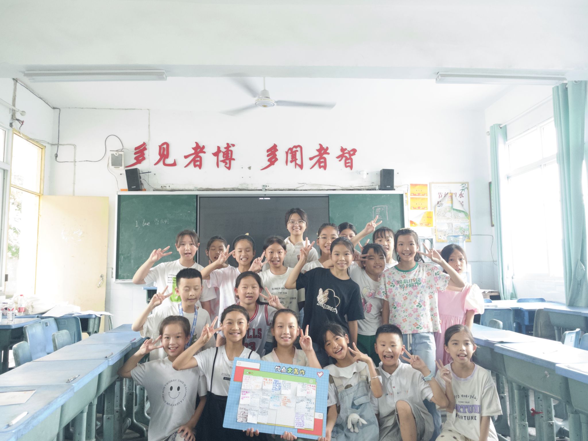 这首歌的旋律激昂,歌词立志,深深地鼓舞了学生们,让他们明白每个人都有自己独特的才能和价值。在教学活动中,学生踊跃发言,展示自己的优点。通过手势舞让学生发现自己的优点并写在便利贴上,并将便利贴粘贴在优点大轰炸泡沫板上。让学生更加相信自己的能力,促进他们在快乐中成长,从而在面对挑战时更加勇敢和自信。