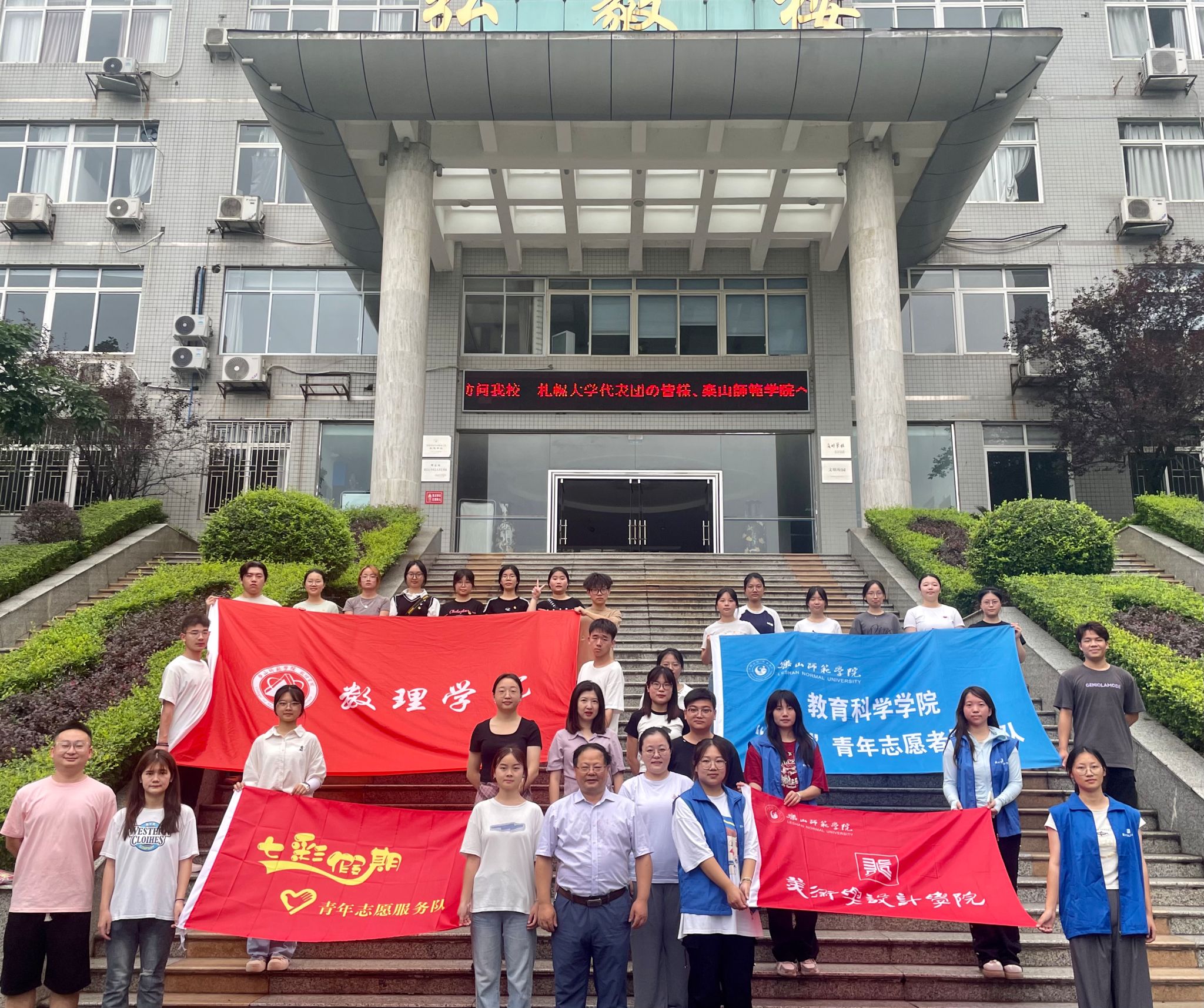 本网讯(图/张媛、莫云敏,文/鲍熙慧、熊与欢)为深化“三下乡”志愿服务,增强大学生的社会责任感和使命感,同时给孩子们不一样的假期体验,7月6日,由教育科学学院“乐芽”志愿服务团队牵头,与数理学院、美设学院共同出征前往犍为县罗城镇中心小学开展为期七天的暑期“三下乡”社会实践活动,教师教育学院院长罗明礼参加出征仪式。