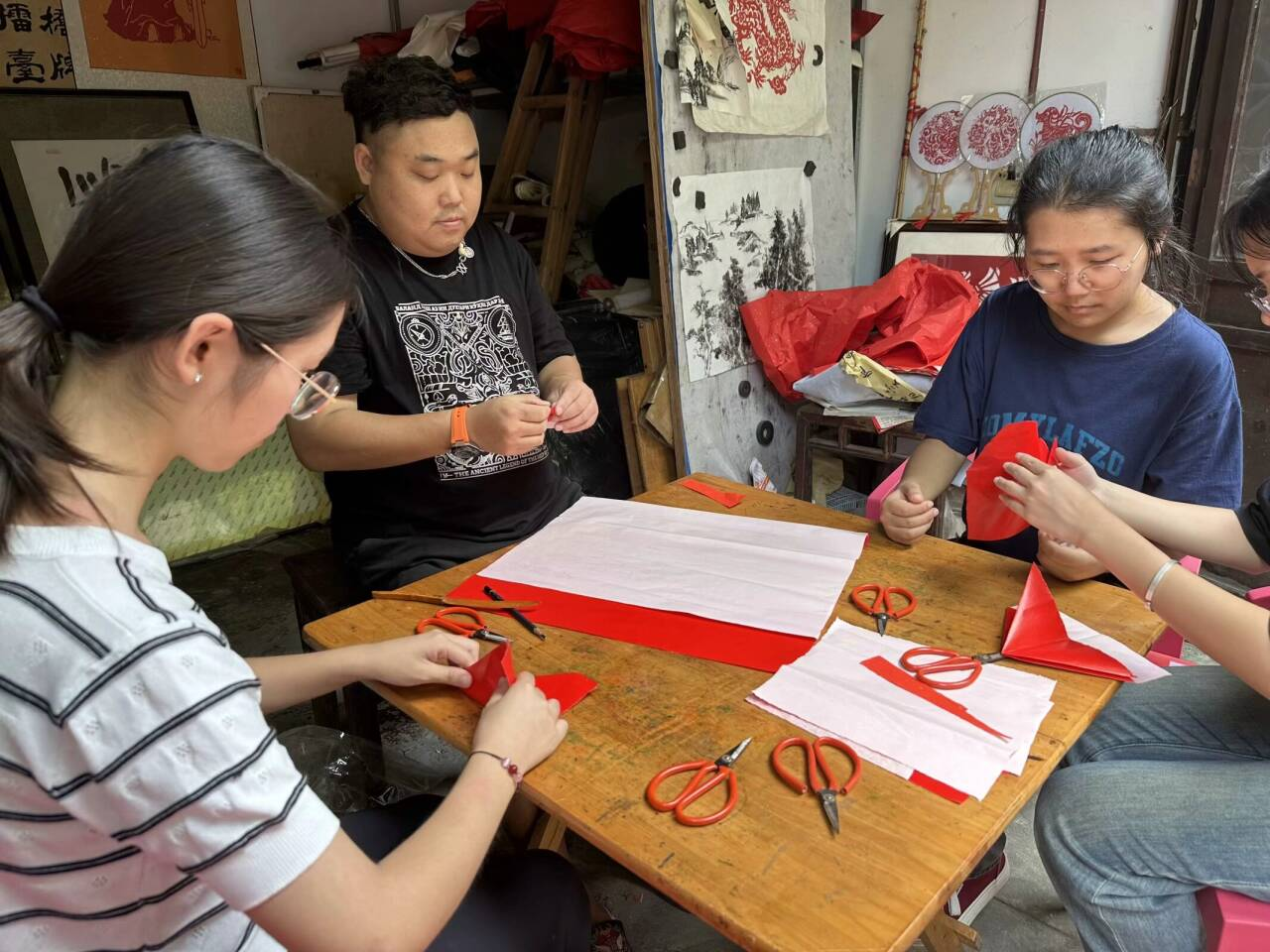 本网讯(文/章晓玉、周小琳、张欣、冯琳;图/高靖雄)为了更好地推广清溪剪纸这一非遗文化,7月5日下午,旅游与地理科学学院志愿者们深入乐山市犍为县剪纸文化馆,在传承人李如师傅的带领下学习了解清溪剪纸文化的历史、特点,学习剪纸。7月8日,志愿者们来到冠英镇综合文化站宣传清溪剪纸文化,带领小学生们一起剪纸,让学生们认识并了解清溪剪纸,让清溪剪纸深入人们的生活。