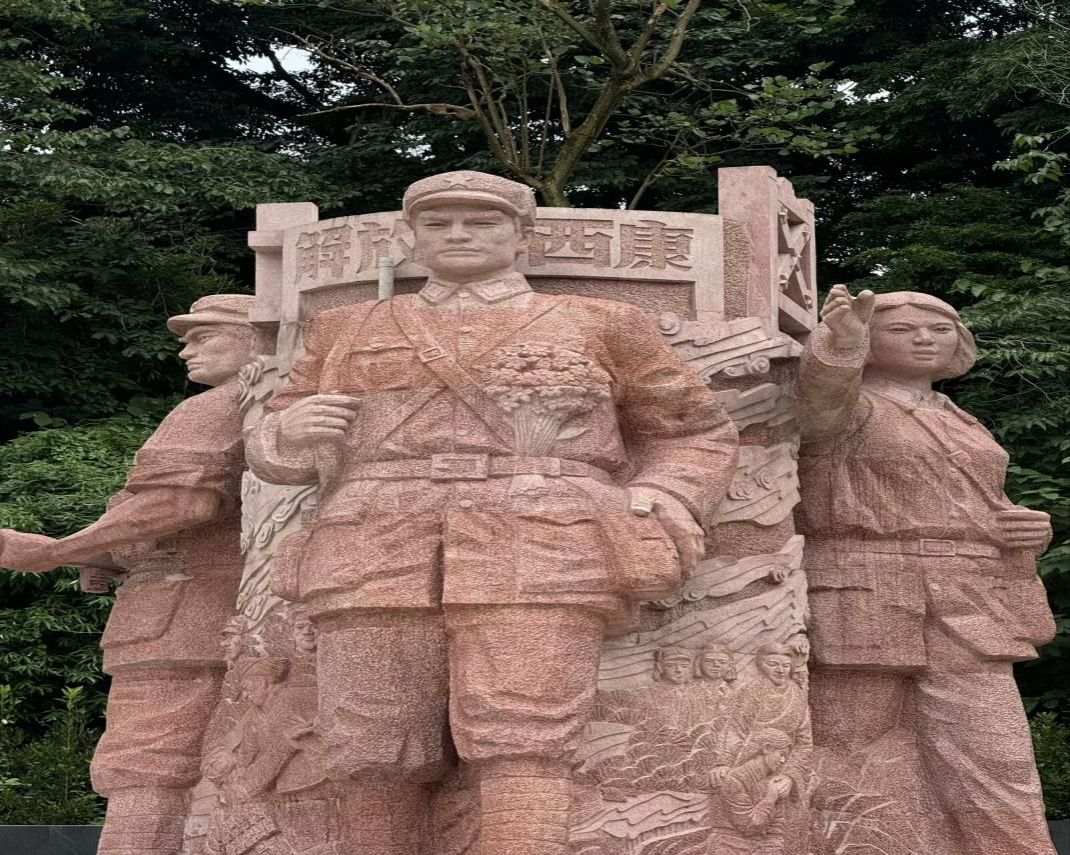 雅安烈士陵园位于苍坪山麓,安葬着345位在西康解放斗争中及一九四九年后各个时期光荣牺牲的英雄烈士。首先,实践团队前往人民革命烈士纪念碑进行参观,在庄严肃穆的氛围中,大家认真聆听了讲解员讲解关于碑身图案的象征意义和碑文的精神内涵。随后,实践团队行至纪念广场瞻仰主题雕塑。讲解员对雕塑图案背后的故事和寓意进行深入分析,成员们仿佛穿越回了那个烽火连天的年代。大家纷纷表示,这些真实的历史故事让他们深刻感受到了革命先烈的伟大牺牲和无私奉献,更加坚定了他们为实现中华民族伟大复兴的中国梦而努力奋斗的决心。