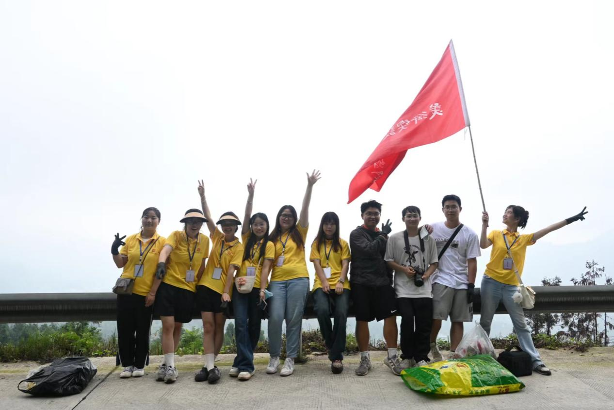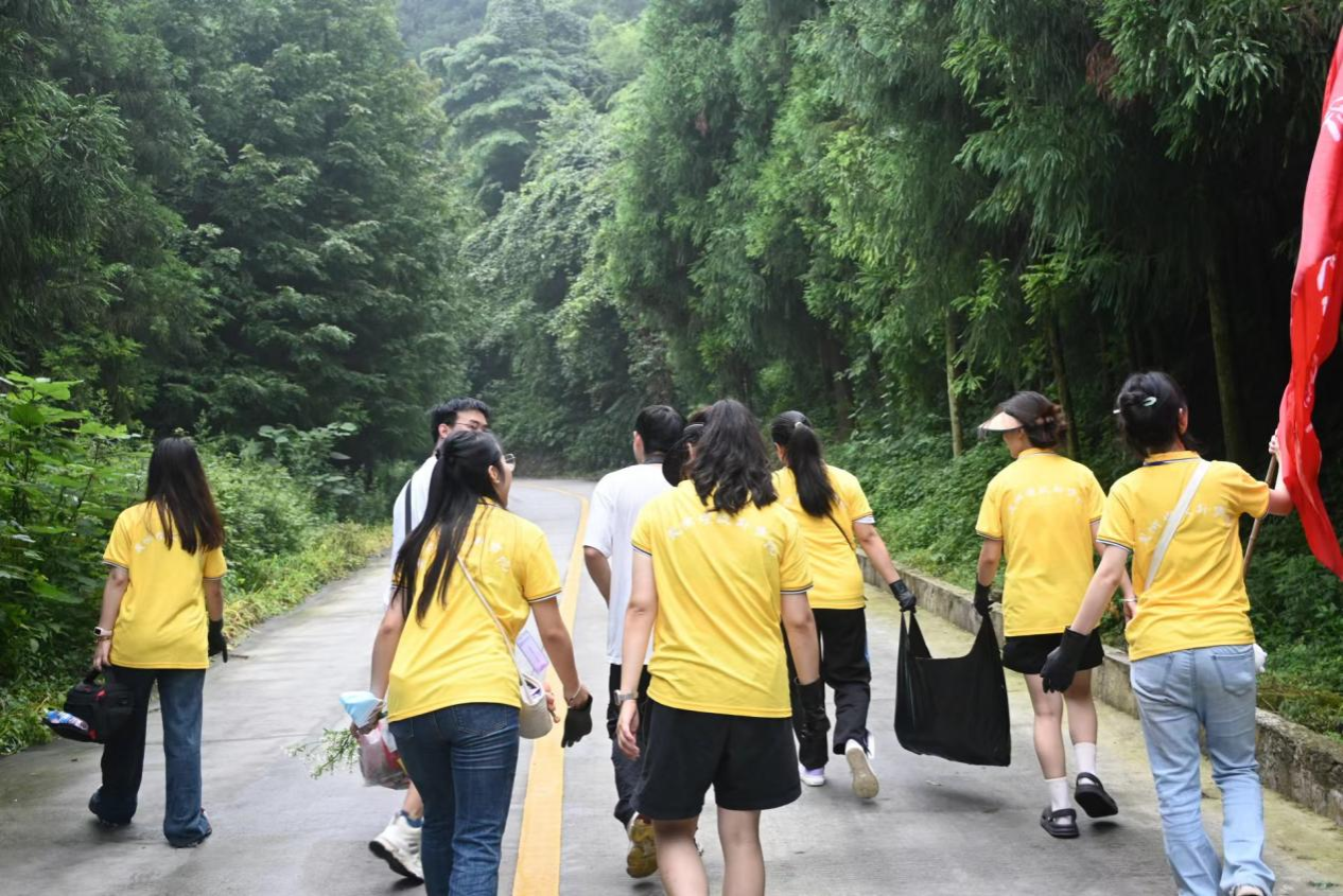 午后时分,美术与设计学院的志愿者们又踏上了新的征程。他们紧随村两委领导罗贵斌书记的步伐,沿着五指山的蜿蜒小径,深入这片绿意盎然的自然秘境。手持垃圾袋、夹子,手戴防护手套,他们瞬间化身为勇敢的环保小卫士,深刻贯彻“劳动教育进乡村,勇担责任助振兴”,对五指山进行了一场别开生面的劳动教育捡垃圾行动。汗水虽浸湿了衣衫,但他们的脸上却洋溢着满足与自豪的笑容。因为他们深知,自己的每一分努力都在为这片美丽的土地添砖加瓦,让自然之美得以永恒延续,也让自己深刻体会到张村村的大自然风光。