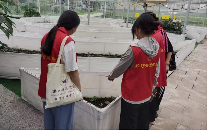 在中国魔芋科技示范园,志愿者们调研当地产业金融发展情况,并对园区发展作出金融规划。同时,对来参观的游客普及助农金融知识。