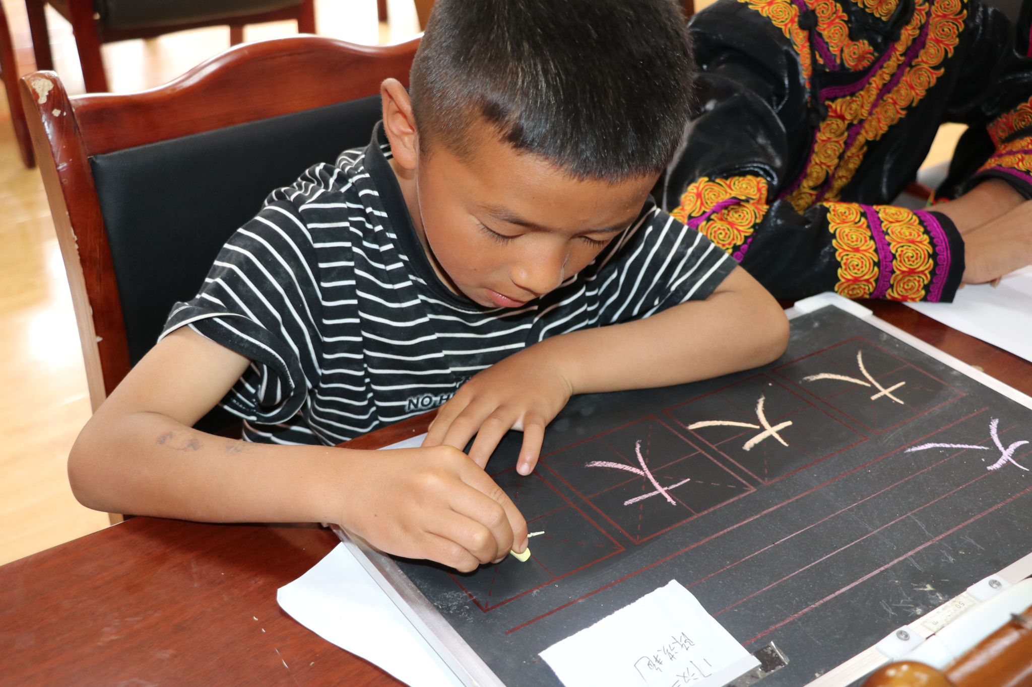 随后,志愿者带来了一堂别开生面的折纸艺术课和粉笔字课。在折纸艺术课上,通过志愿者的耐心指导,孩子们用样式纷繁的卡纸创作出皇冠、千纸鹤、爱心等精美的作品,孩子们不但进一步增强了自己的动手能力,而且能够用标准普通话流利表达出作品名称和自己颇具成就感的心境。粉笔课堂上,在志愿者教授了粉笔书写的基本技巧后,孩子们便在分类指导下挥洒创意,用普通话文字在黑板上书写自己的理想,一笔一划间,普通话的种子在孩子们的心中生根发芽。