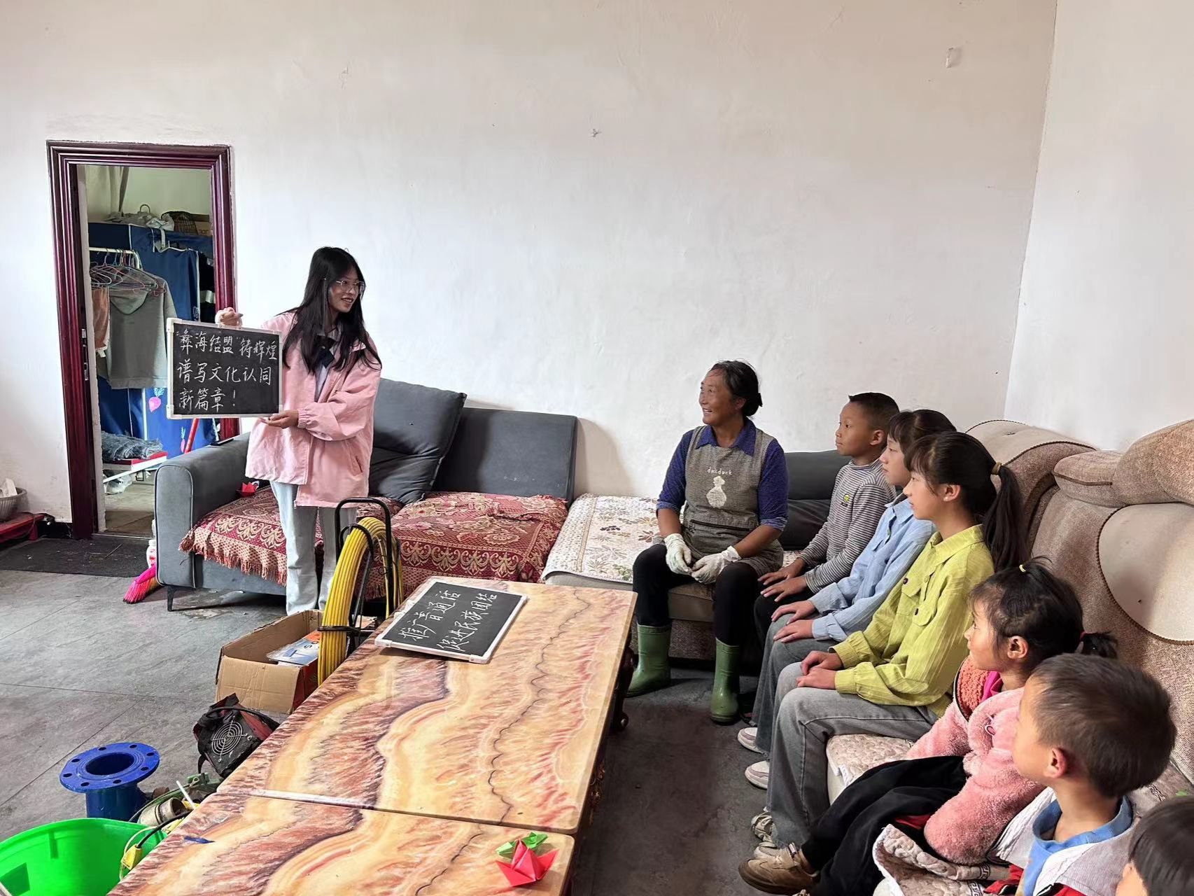 课堂之外,志愿者们走进彝族家庭,面对面、心连心地与当地人们交流。在这个过程中,普通话不再是简单的交流工具,而是成为了连接不同文化、促进民族团结的纽带。“彝语融普”是志愿者们在送教过程中特别注重的一个方面,因为志愿者们深知,在尊重和保护彝族语言文化的同时,必须辅以推广普通话的日常使用,才能够为促进当地教育发展和乡村振兴的提供文化支撑。因此,在送教过程中,志愿者们将彝语与普通话相融合,通过双语教学的方式讲授,既保留了孩子们对母语的情感认同,又激发了他们学习普通话的兴趣和动力。志愿者们耐心地倾听孩子们的彝语表达,鼓励他们用普通话进行回应,使两种语言在交流中相互碰撞、相互融合,绽放出独特的魅力。