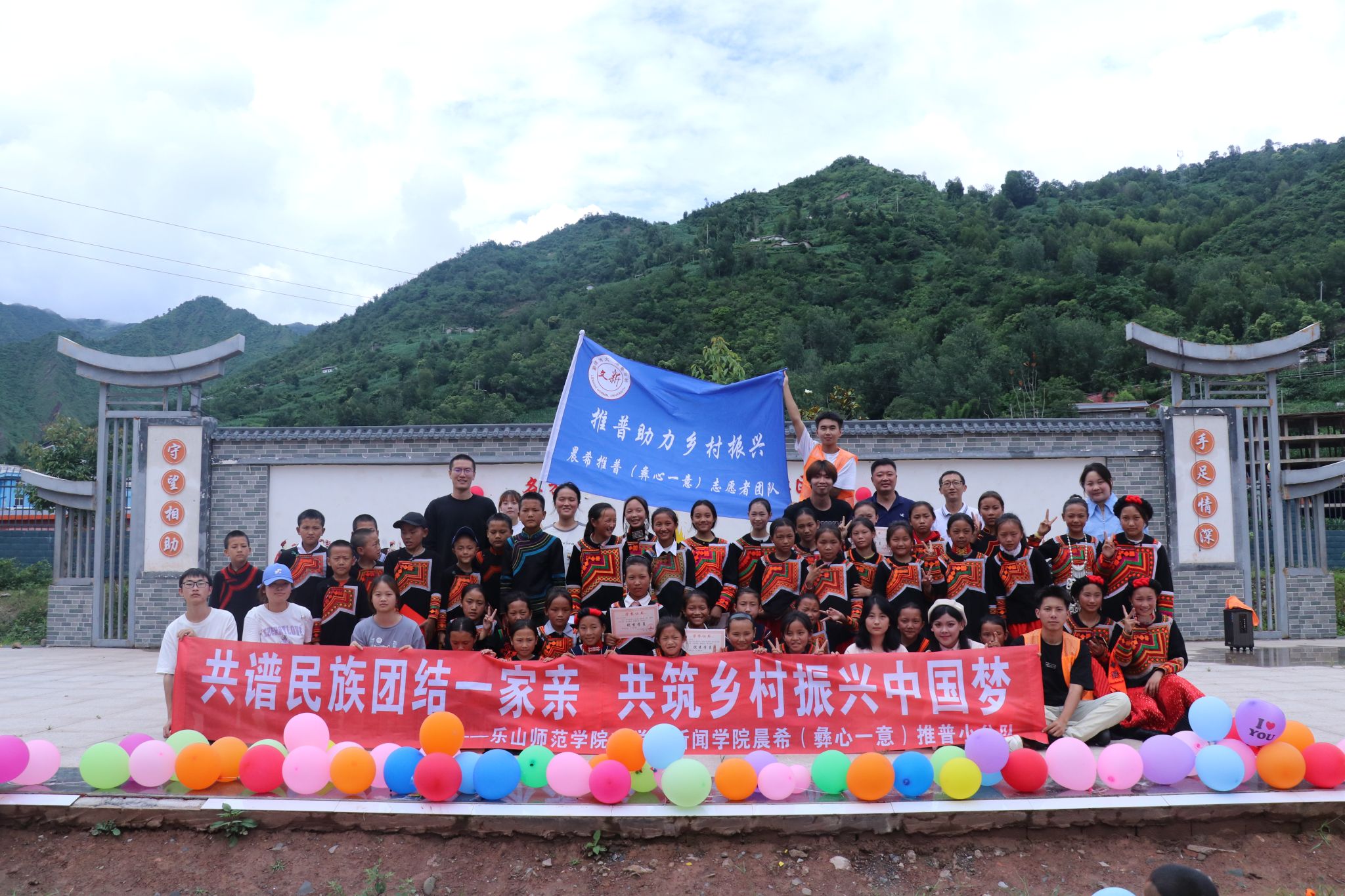 本网讯(文/陈容 图/窦爽)7月10日,由乐山师范学院文学与新闻学院举办的“共谱民族团结一家亲,共筑乡村振兴中国梦”推普活动在美姑县牛牛坝举行。