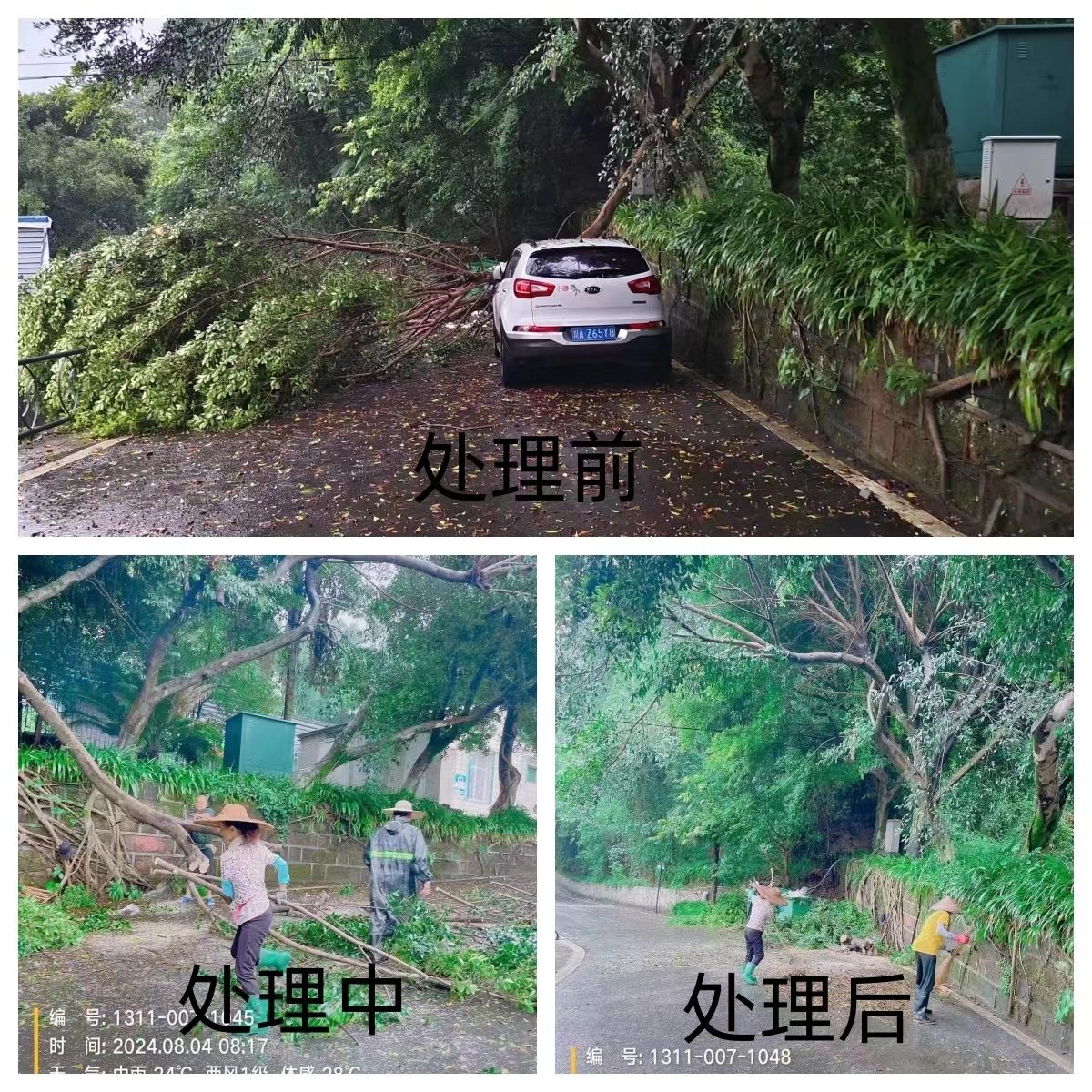 校园绿化中心按照“先抢险保通畅、再修剪除隐患、后清运促恢复”的原则组织人员开展倒伏树木排查抢险工作,共处理自来水厂后、武大纪念碑、百果苑天桥铁门处树木倒伏3处,游泳池外路边小叶榕断枝阻挡道路1处,枯枝掉落10余处。