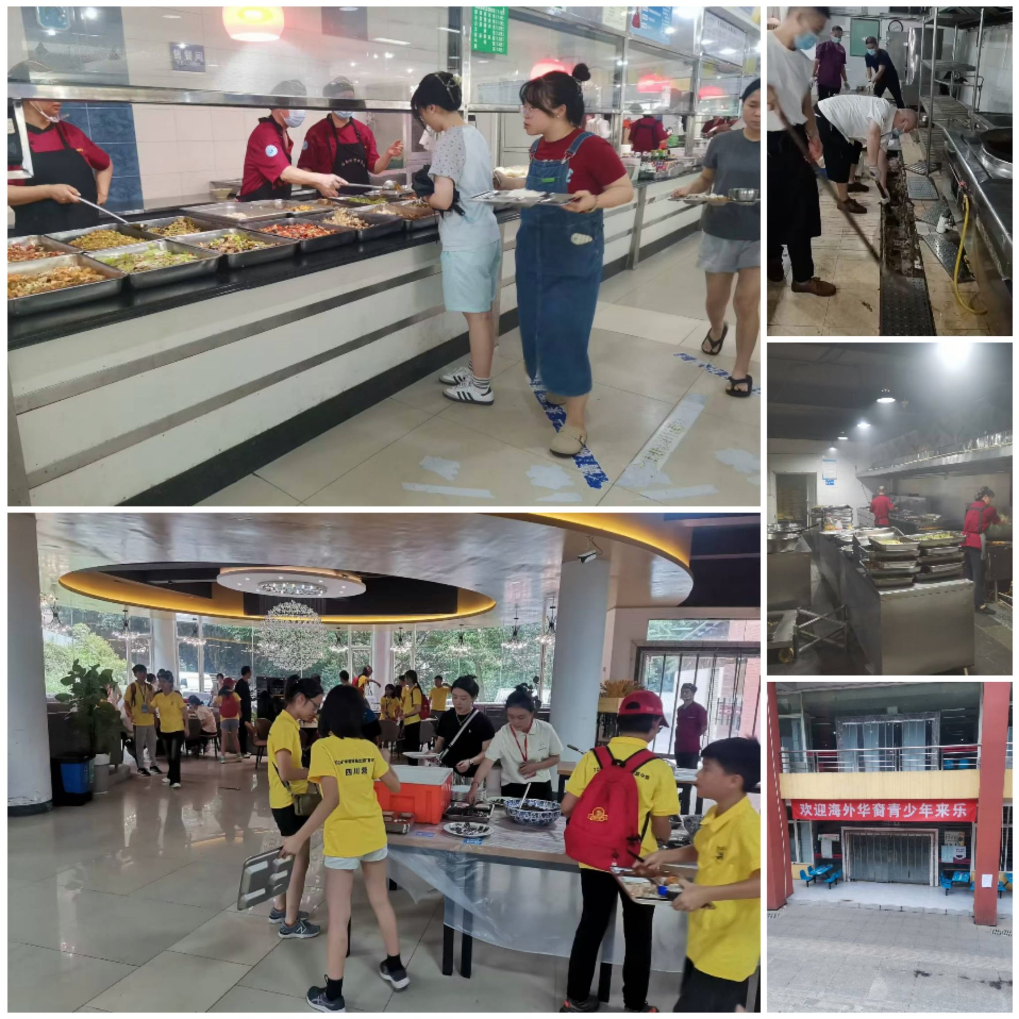 让师生吃得放心、安心、舒心始终是后勤饮食服务中心孜孜以求的目标。暑期,百景苑二楼食堂员工用心烹饪,严把食品安全关,从食品原材料验收、加工到窗口售卖,从回收餐具到清洁就餐大厅,每一环节都严格把关,用心守护舌尖上的安全。除保障假期近两千名师生员工的日常用餐,值班餐厅还承担了市人民医院职工子女夏令营、校友回校等就餐任务。饮食服务中心还对后厨设施设备进行新购、维修、清洗,为保障南馨苑开学顺利开餐,招聘20余名食堂工作人员,力争在新学期到来之际,为师生员工提供更加安全、优质、舒适的餐饮服务。