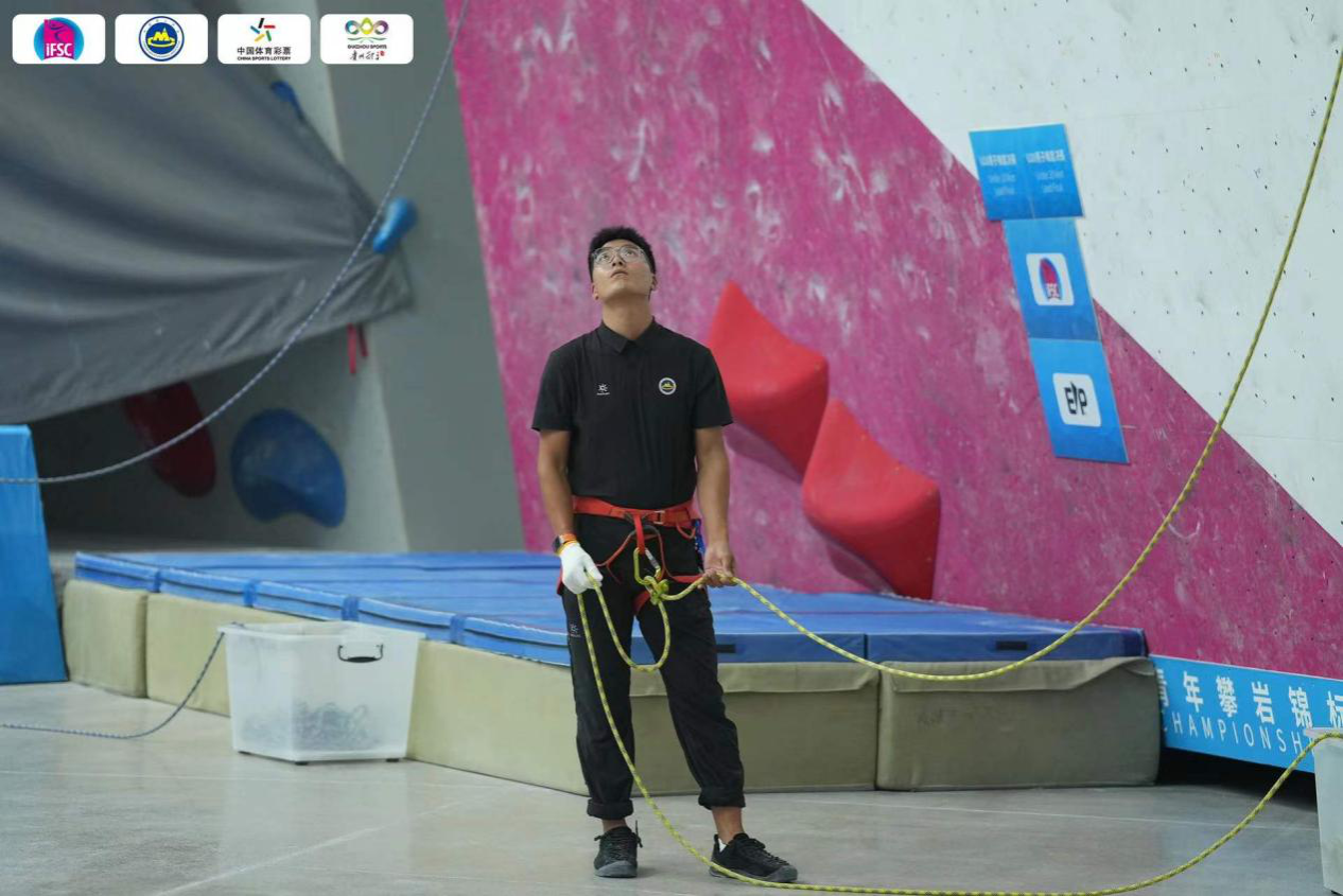 张剑老师本次的岗位为保护裁判,主要工作于难度比赛中,为运动员的攀爬提供安全保障,岗位可以说是至关重要,需要过硬的保护技术,赛事开始前需要进行竞赛规则测试以及保护技术测试,均顺利通过。通过本次比赛的裁判工作,丰富了执裁经验,增加了执裁能力,提高了判罚的精度,对各项裁判工作有着更深入的认识。在后期的攀岩运动课程中能够结合最新的竞赛规则对学生进行讲授,促使学生了解与掌握最新竞赛规则,以及在执裁过程中的具体事项,有助于将学生培养成为有技术、懂规则、会运用的应用型人才。