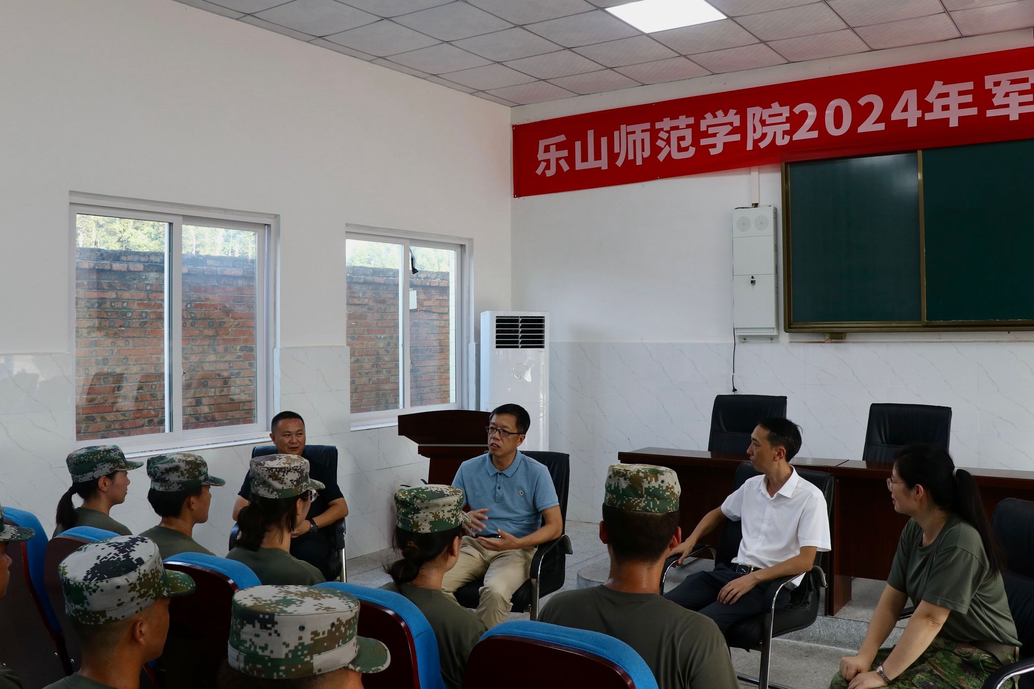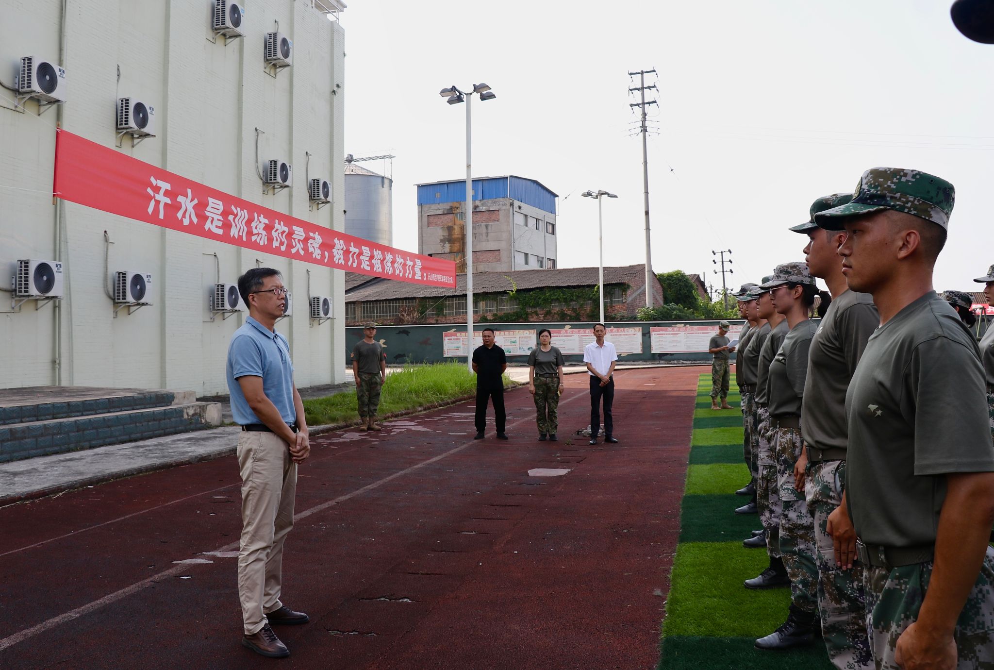 李朝晖强调,同学们提前返校参加集训是磨炼意志、提升自我素养的宝贵机遇,希望大家珍惜训练机会,以“弘毅自强,笃学践行”的校训精神为引领,继承和发扬乐师优良传统,锤炼坚韧不拔的优秀品质;希望大家要以身作则成标杆,要以军人的精神激励自己,充分展现当代大学生的精神风貌,保持优良作风传递正能量,为入学新生做好榜样;要让特色成精品,展示集训成果,不断凝练总结,持续打造国防育人品牌。