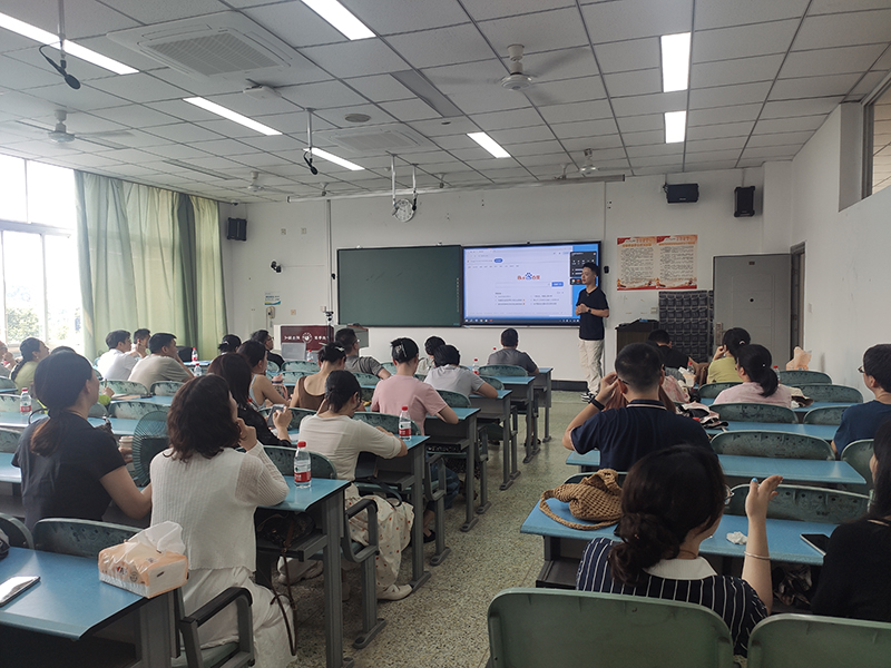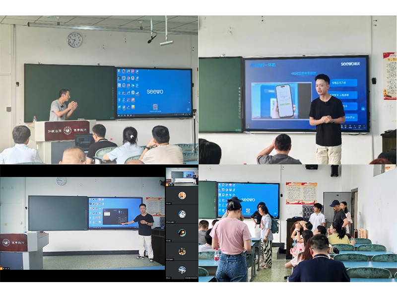 本网讯(文、图/王强)8月30日,信息技术与实验保障处牵头在行知楼409教室组织开展了行知楼四楼多媒体教室新建智慧黑板的使用培训。培训采用了现场演示交流加腾讯会议线上直播的方式进行,旨在促进教师们更好使用新建智慧黑板,共有45名各教学院教师代表现场参会,另有50余名教师在线参会。